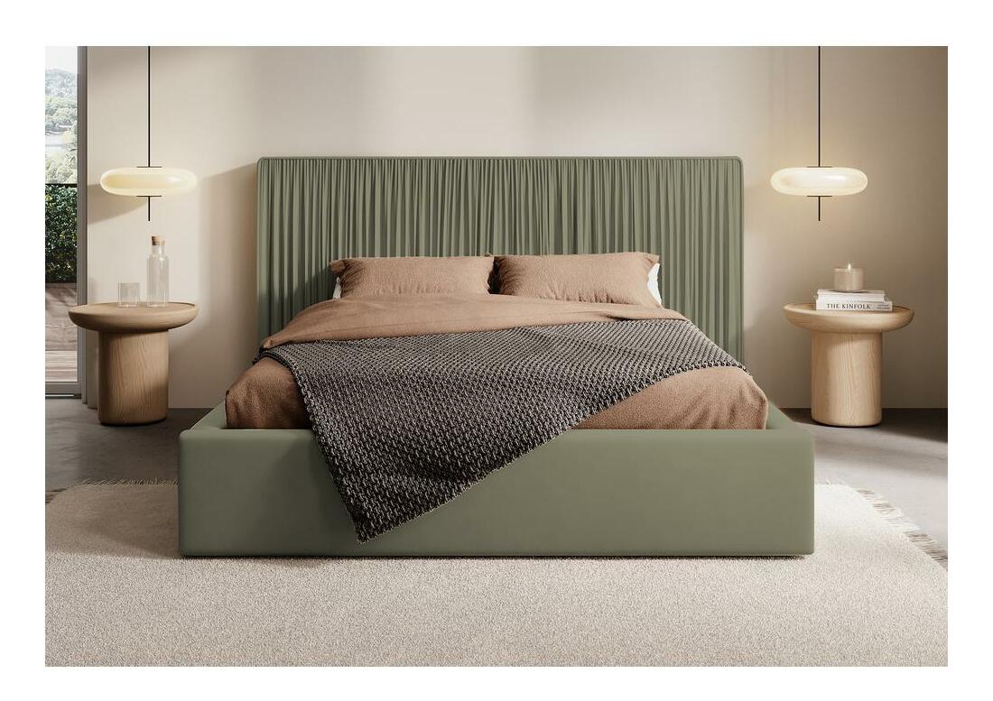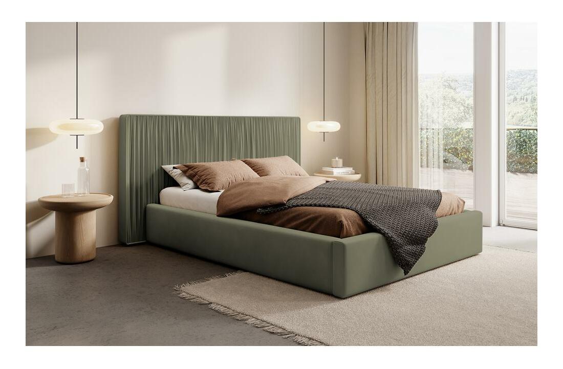 MutasdStílusos ágyat keres hálószobájába? Válasszon kárpitozott ágyat. Szereti a stílusos belső tereket, tele finom szövetekkel és eredeti bútorokkal? Ha a válasz igen, az ágyat Önre gondolva készítették! A modellt kellemes tapintású bársony anyaggal látták el, amely tökéletesen kiegészíti a modern és hangulatos belső tereket. A fejtámla ízléses fodrai varázst és egyedi karaktert kölcsönöznek az egésznek. A fejtámla puha, így boldogan pihentetheti rajta a fejét kedvenc könyve olvasása közben. Az ágyat gázemelőkkel felszerelt fémvázzal szállítjuk, amely megkönnyíti a hozzáférést az ágyneműtárolóhoz anélkül, hogy a hát túlzott terhelése lenne. Fekvőfelület: 160x200 cm. Stílusos ráncok a puha fejtámlán és a kereten. A bútor oliva színű Opera Forest szövettel vannak kárpitozva. Az Opera a bársony család szövete. Jó kopásállóság, súrlódás és foltosodás jellemzi, így kiváló burkolóanyag lesz a bútorokhoz, amit végső soron a legspontánabb lakók is aktívan használni fognak. Kisgyermekes és háziállatokkal rendelkező háztartások számára ajánlott. Lángálló szövet, maximális terhelhetőség 400 kg-ig.
