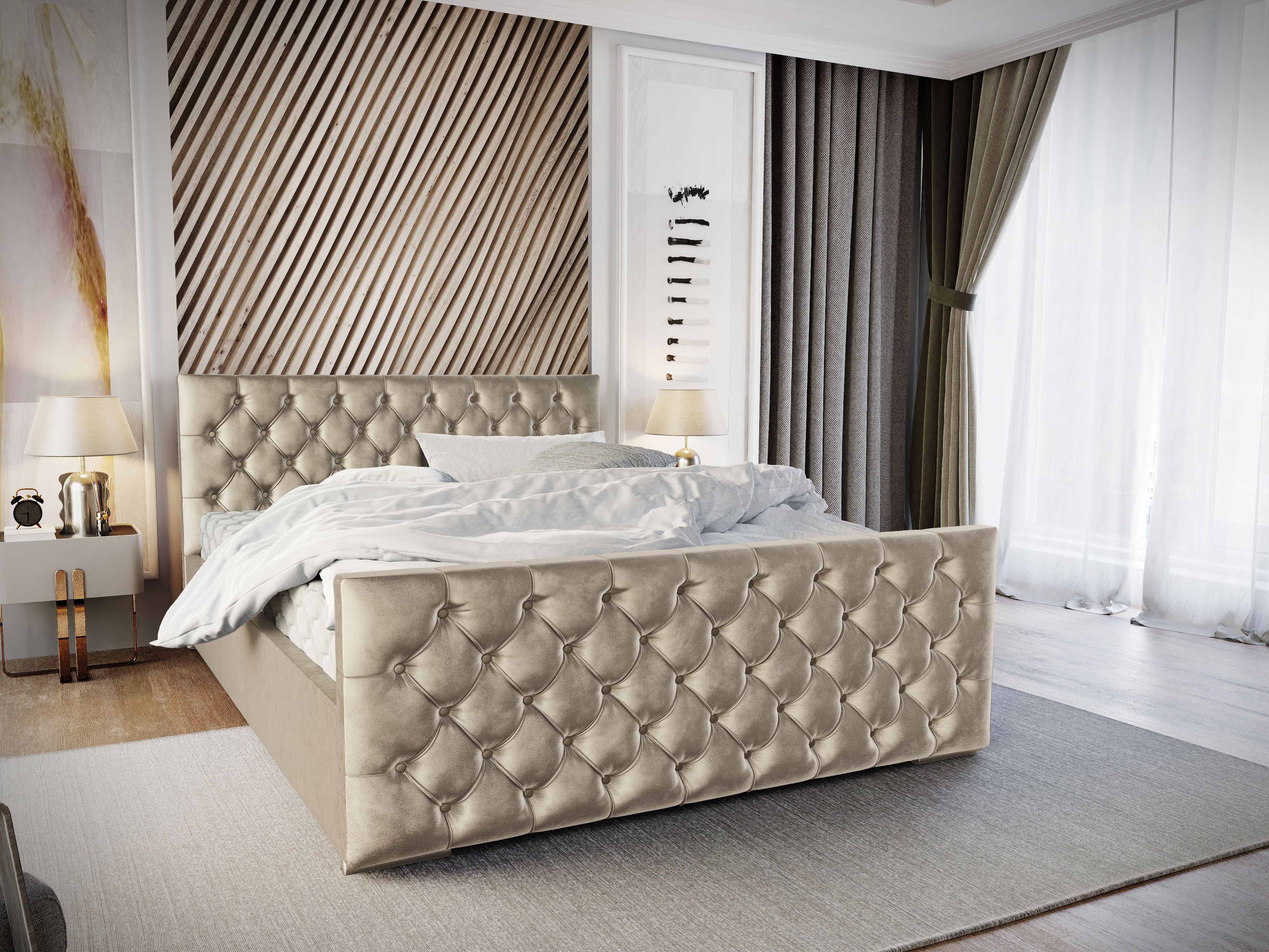Franciaágy 160 cm Velva (bézs) (ágyráccsal és tárolóhellyel)
