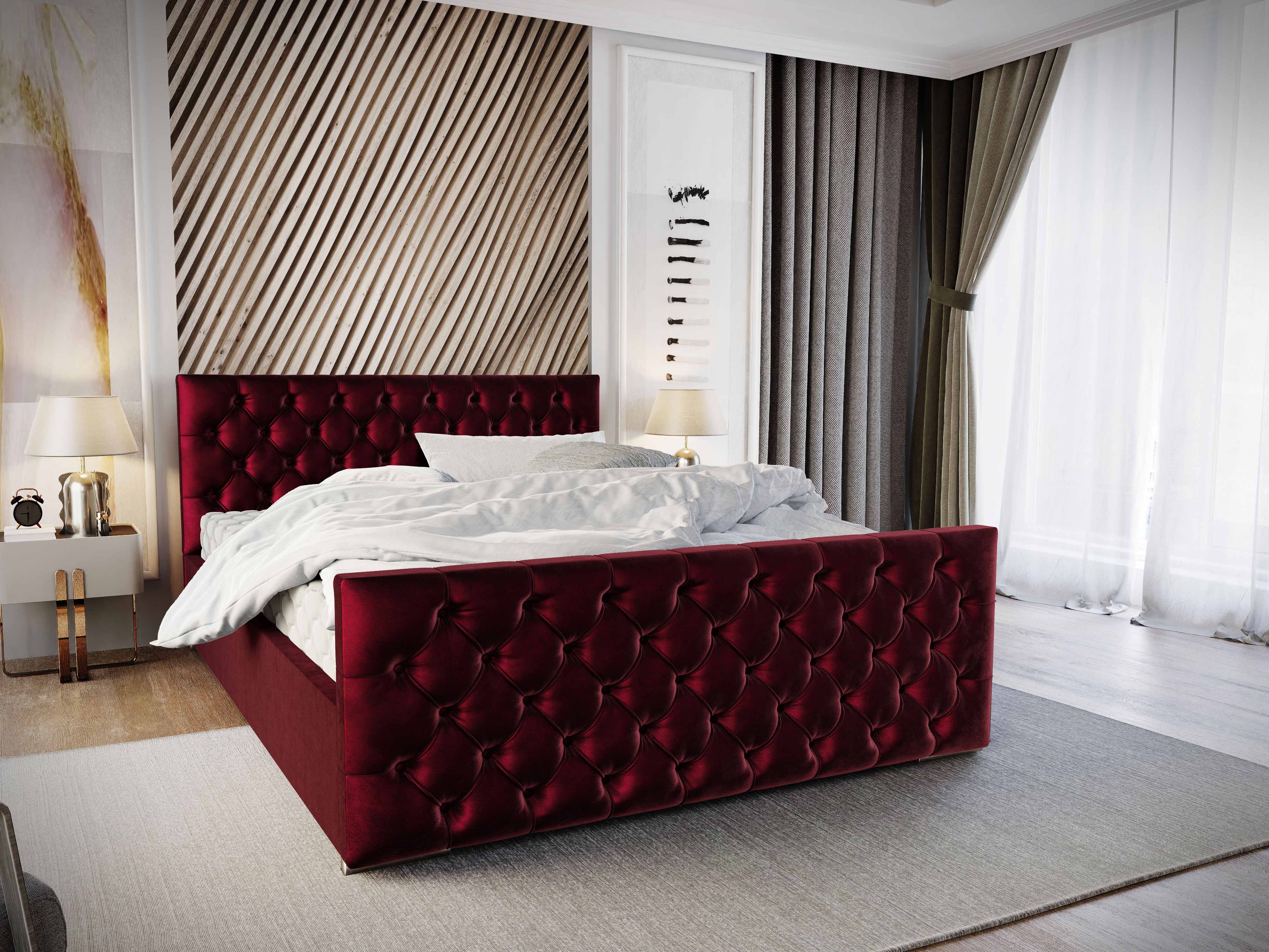 Franciaágy 160 cm Velva (bordó) (ágyráccsal és tárolóhellyel)