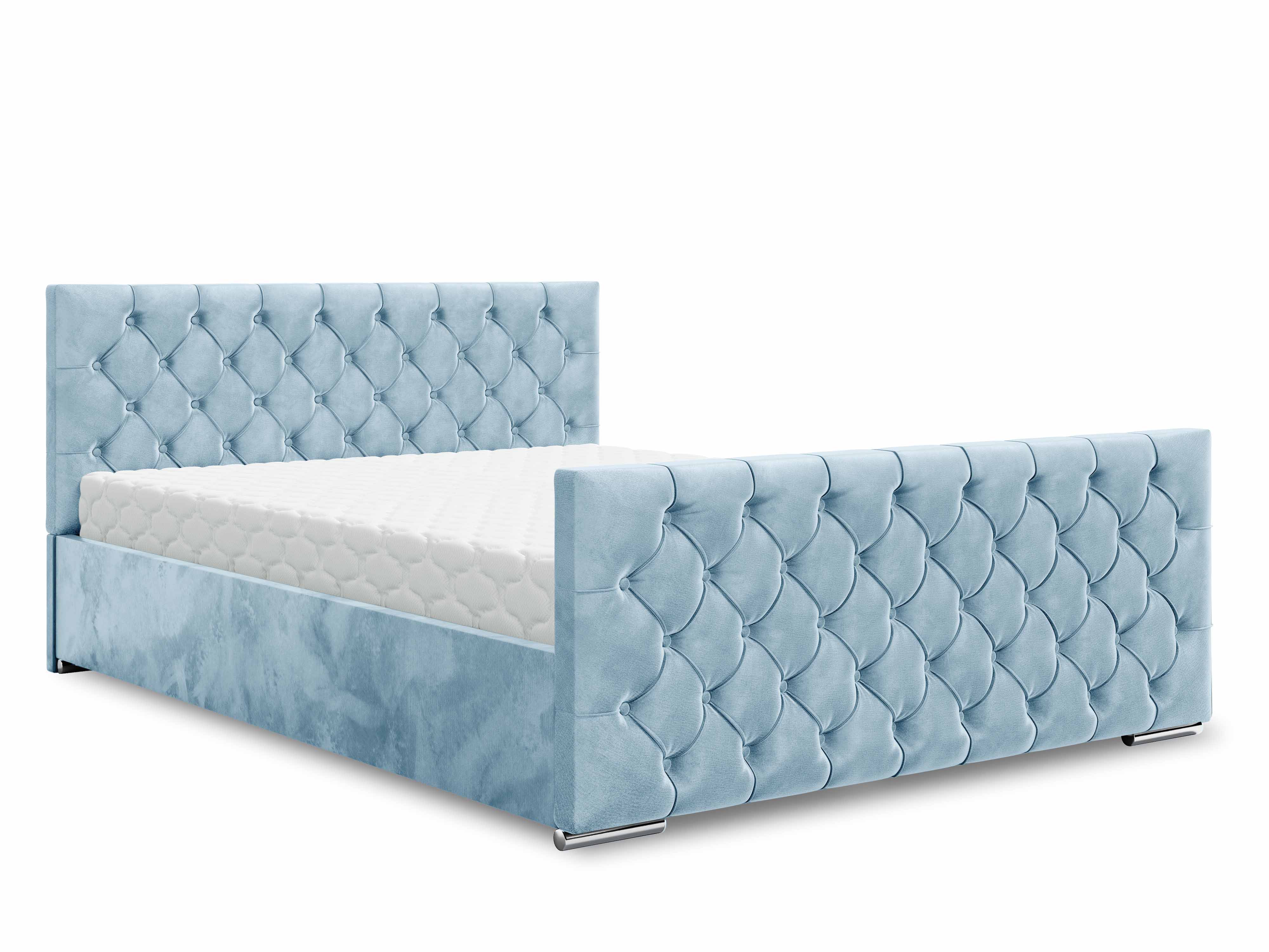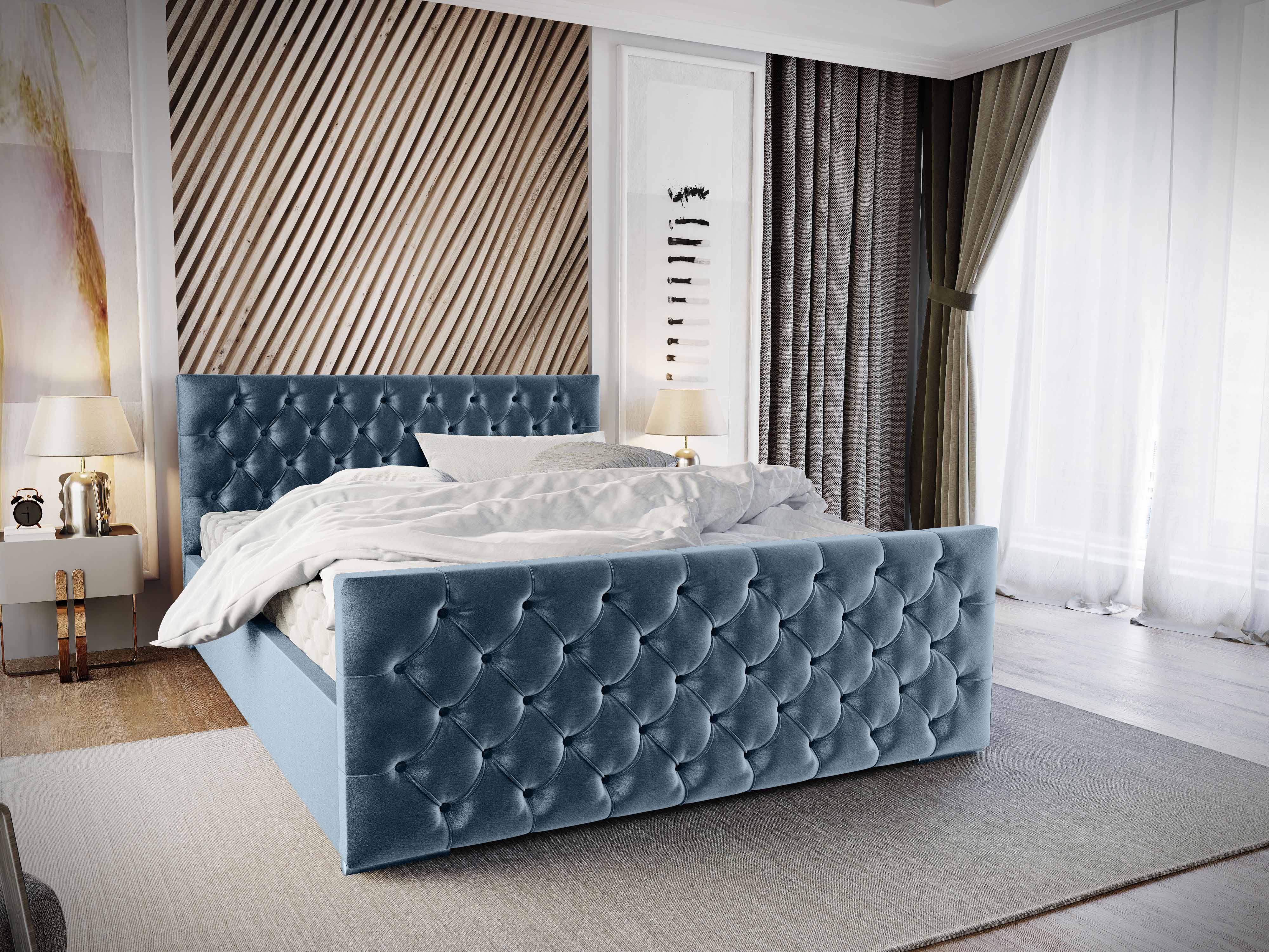 Franciaágy 160 cm Velva (kék) (ágyráccsal és tárolóhellyel)