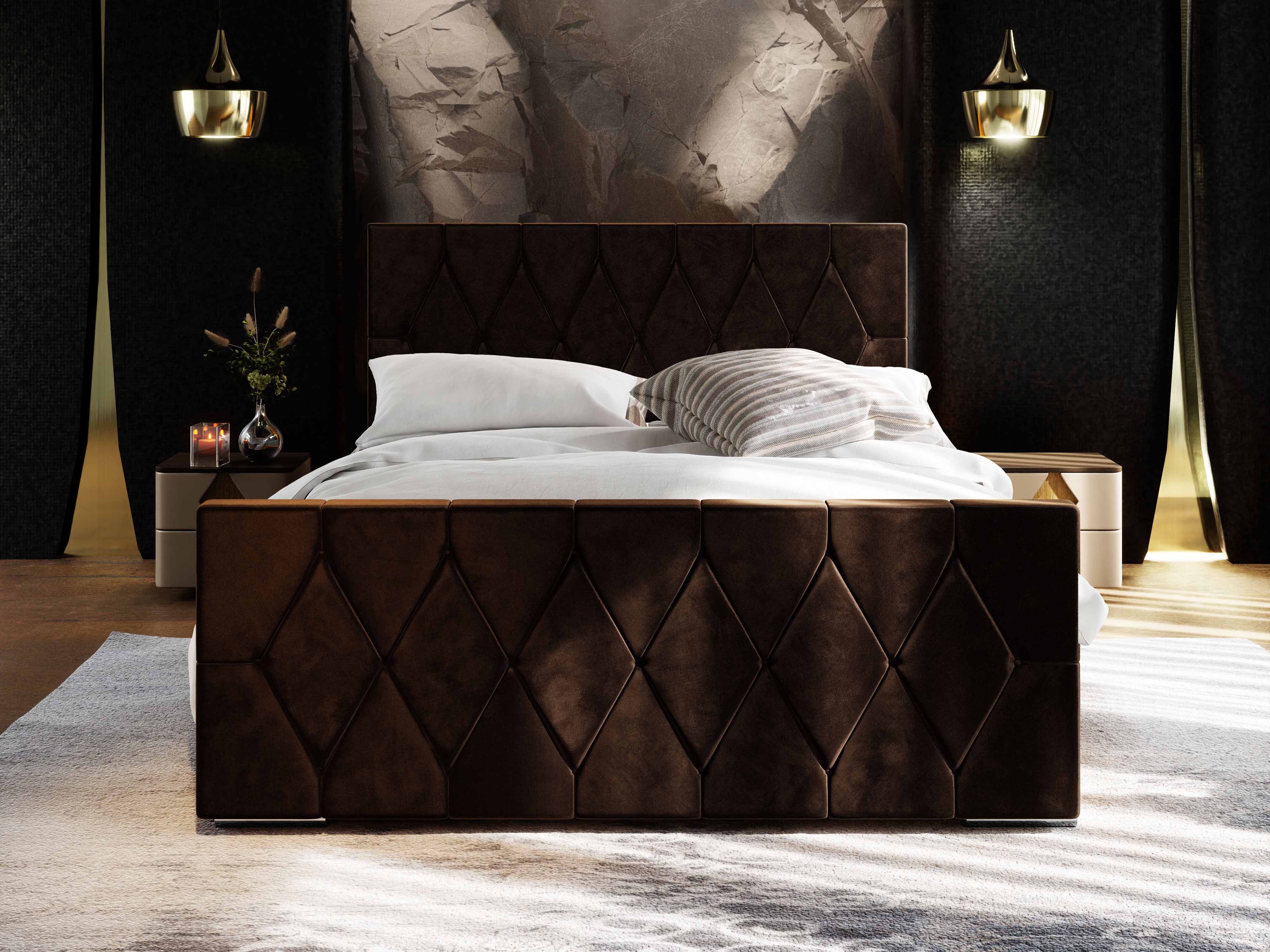Franciaágy 180 cm Alex (sötétbarna) (ágyráccsal és tárolóhellyel)