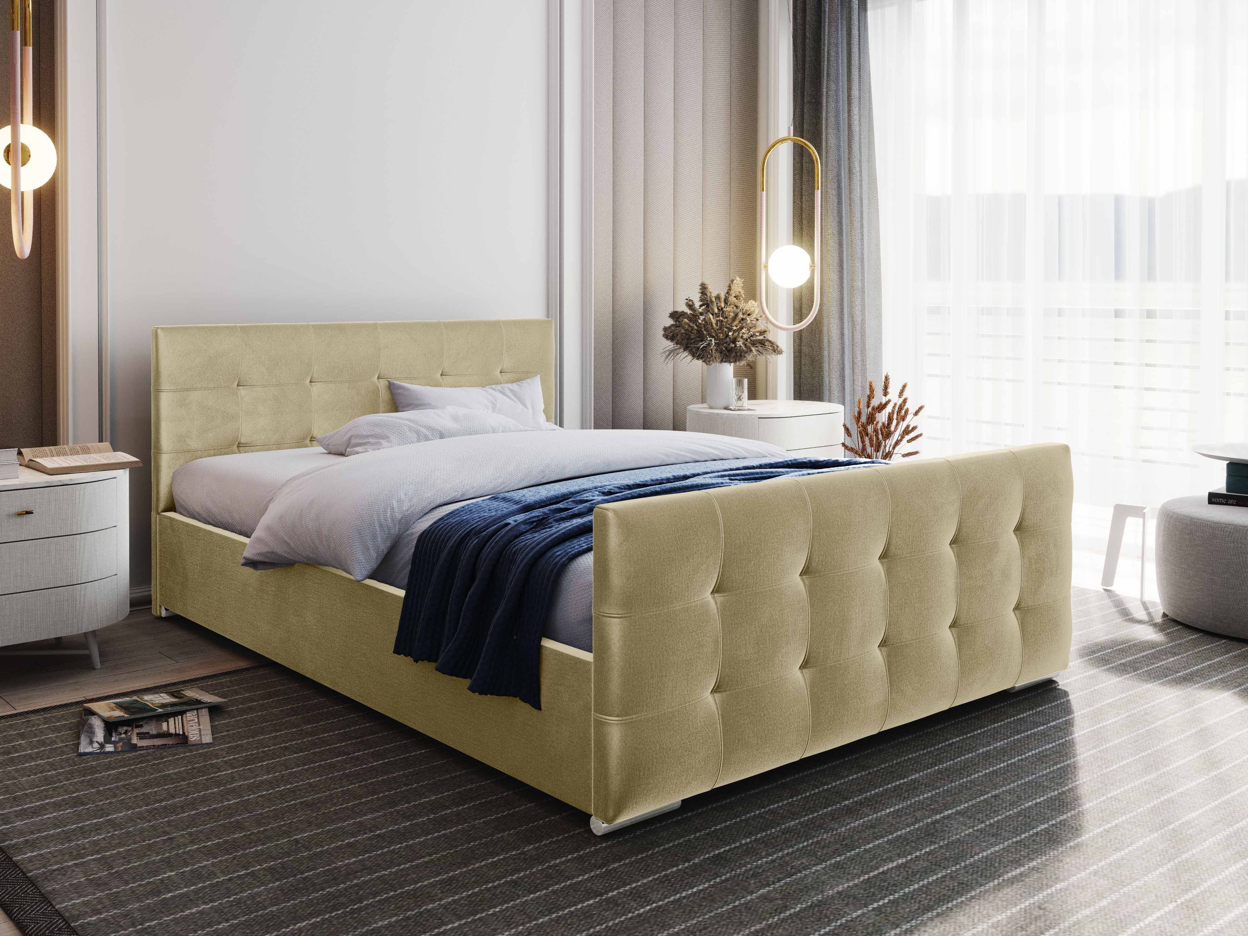 Franciaágy 180 cm Billie (bézs) (ágyráccsal és tárolóhellyel)