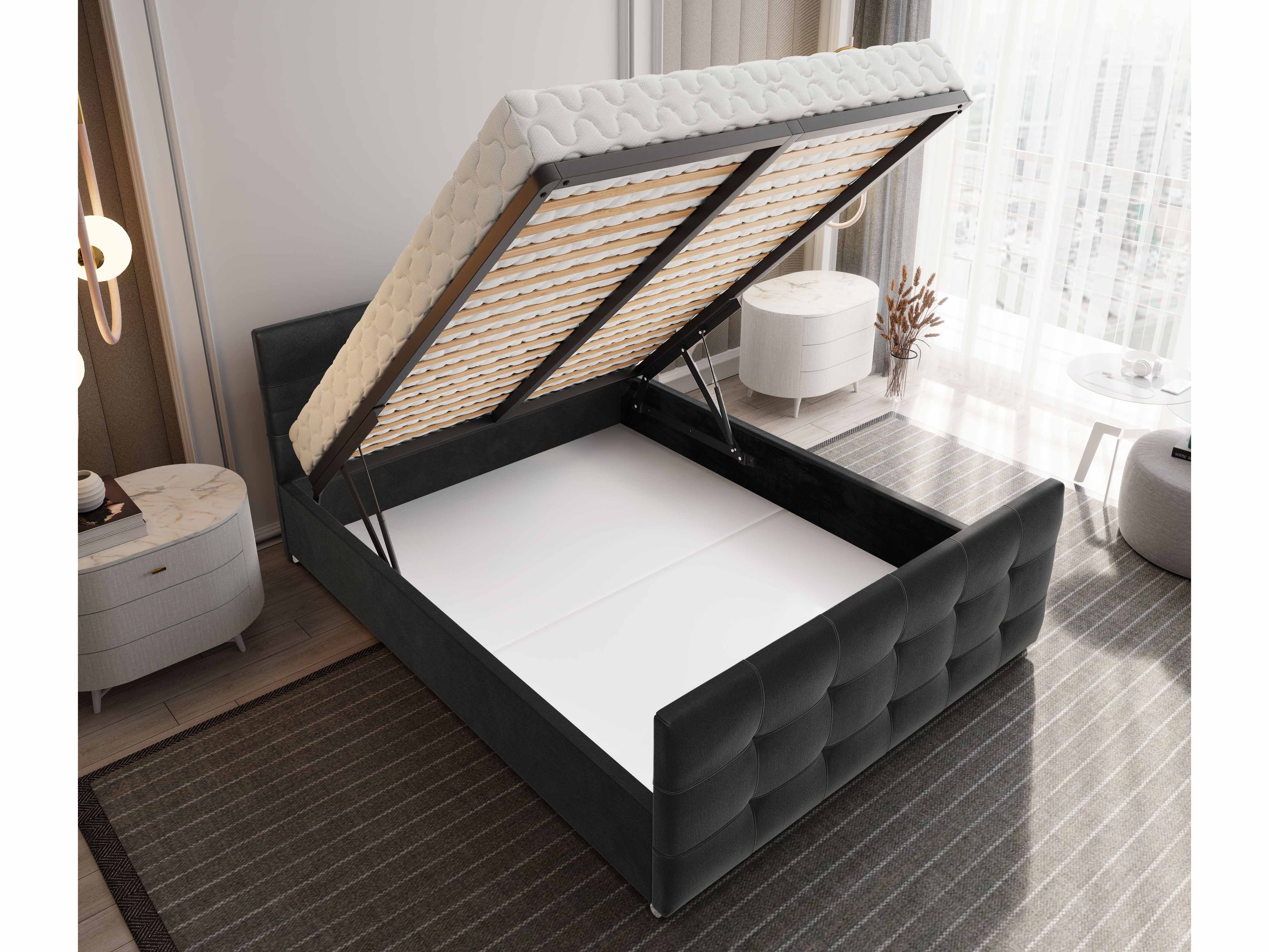 Az ágy rácssal együtt van. A matracot kiválaszthatja és hozzárendelheti internetes üzletünkben.
