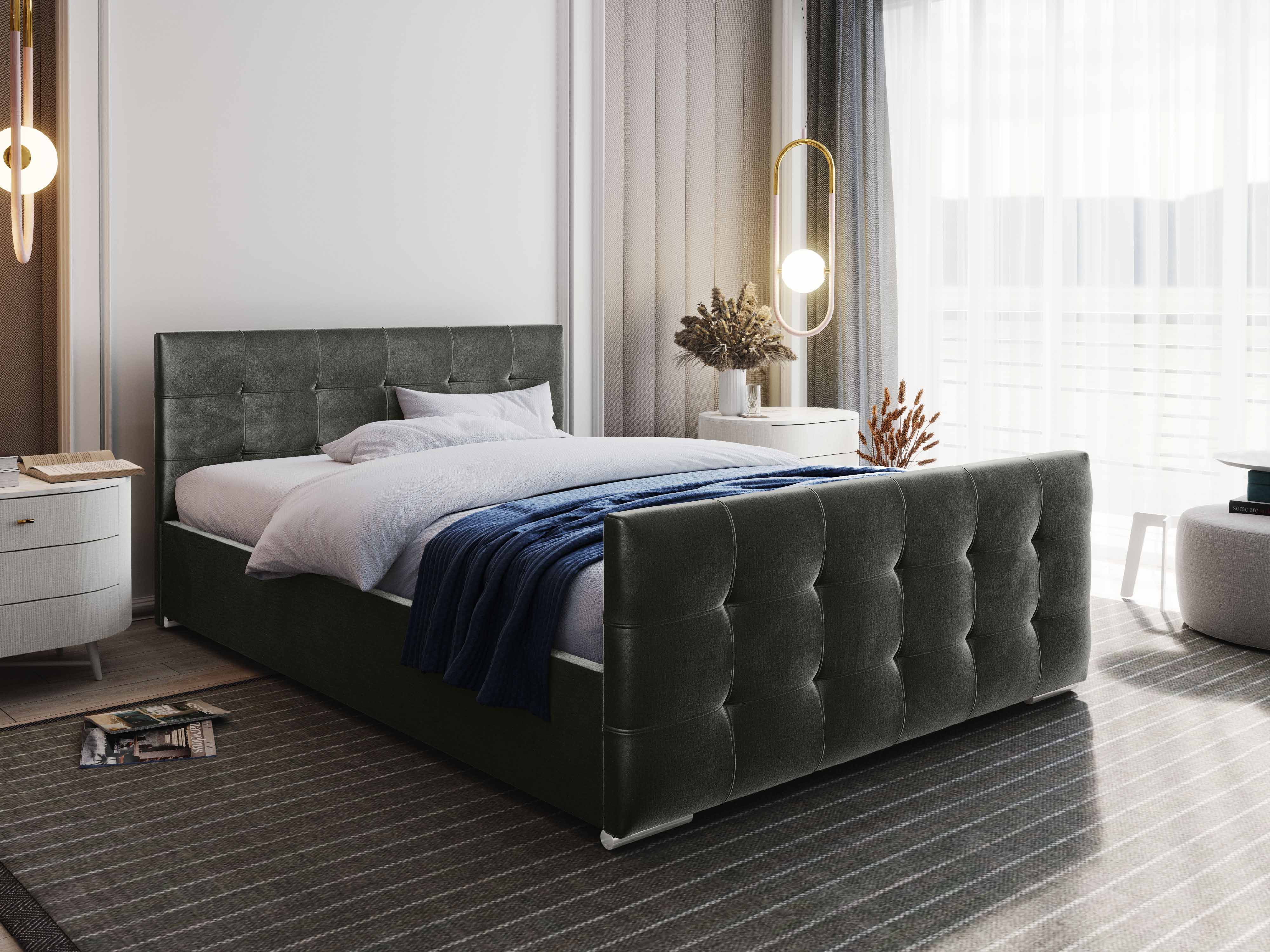 Franciaágy 180 cm Billie (sötétszürke) (ágyráccsal és tárolóhellyel)