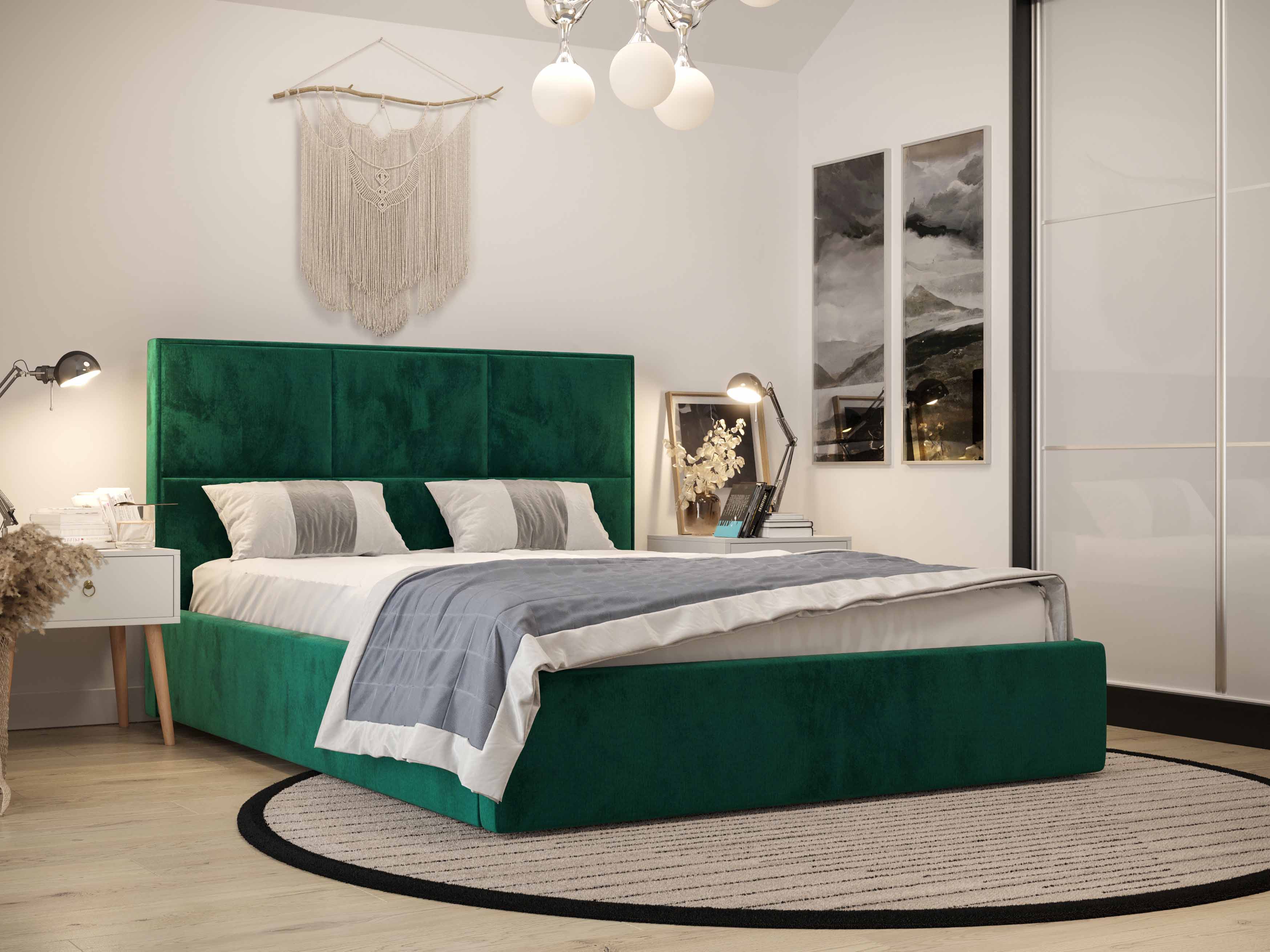 Franciaágy 180 cm Elna (sötétzöld) (ágyráccsal és tárolóhellyel)