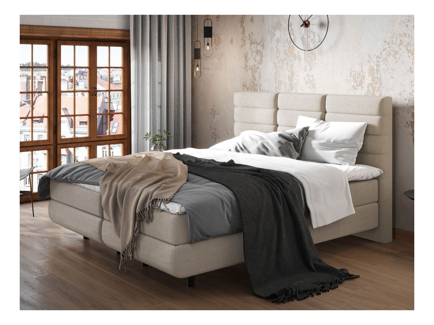 két tárolóhely (az ágy mindkét oldalán), gázrugós emelők a könnyű kinyitáshoz,