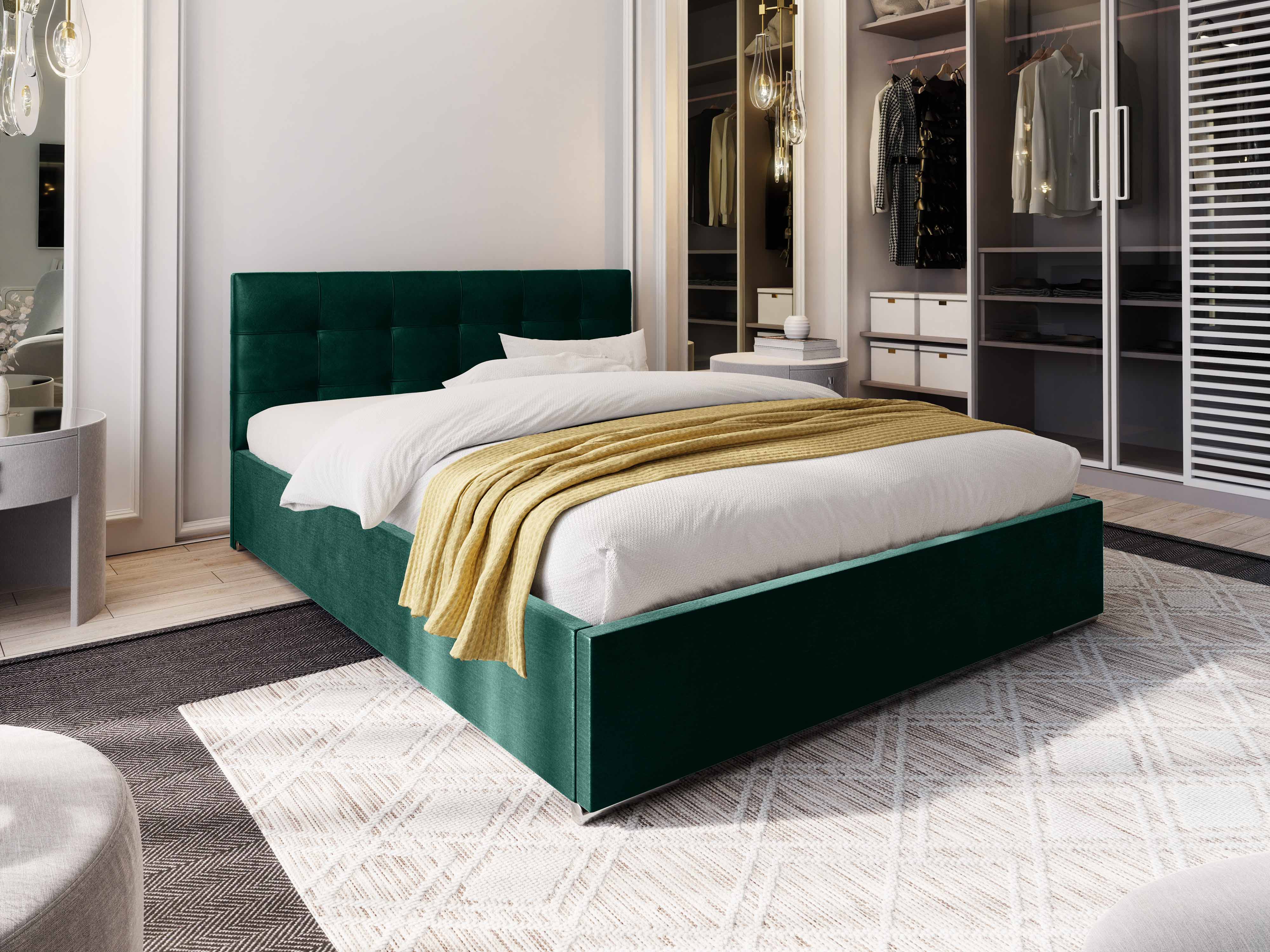 Franciaágy 180 cm Hermila (sötétzöld) (ágyráccsal és tárolóhellyel)