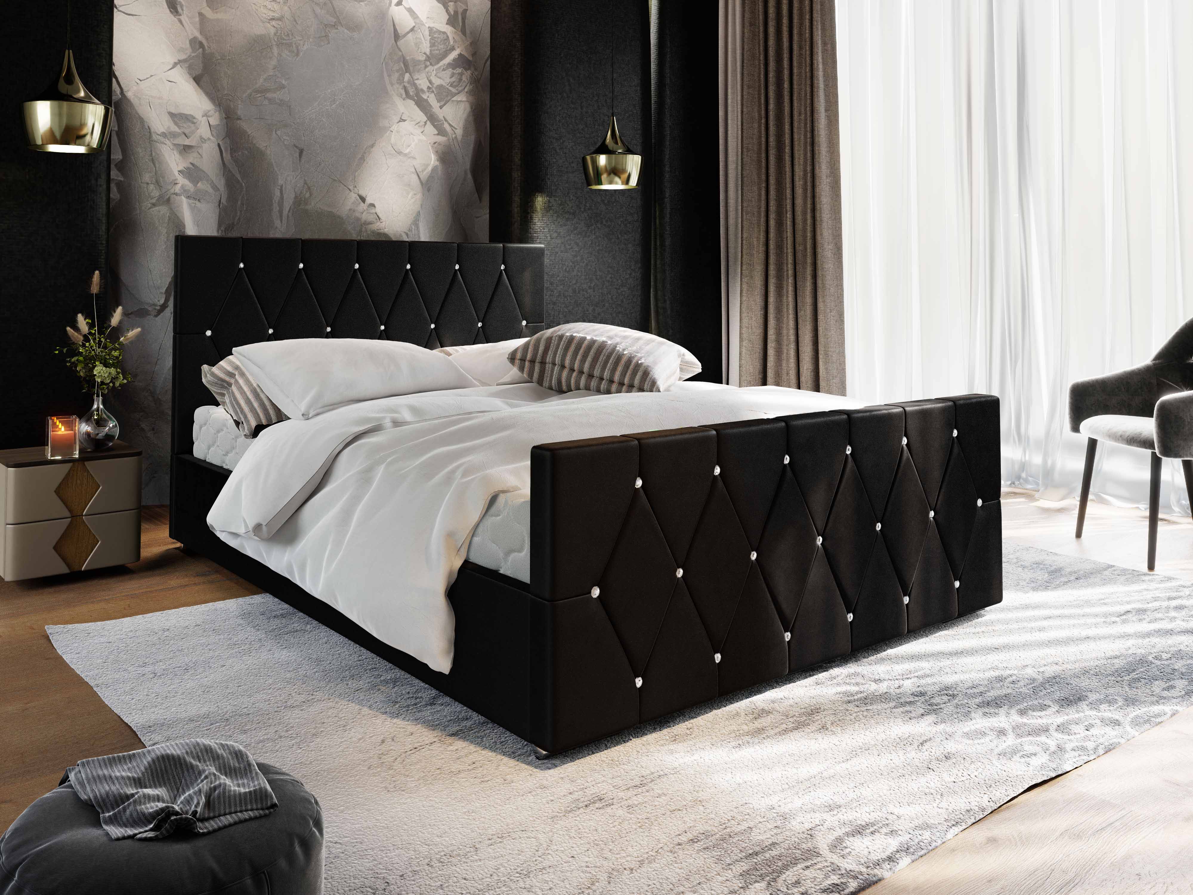 Franciaágy 180 cm Illa (fekete) (ágyráccsal és tárolóhellyel)