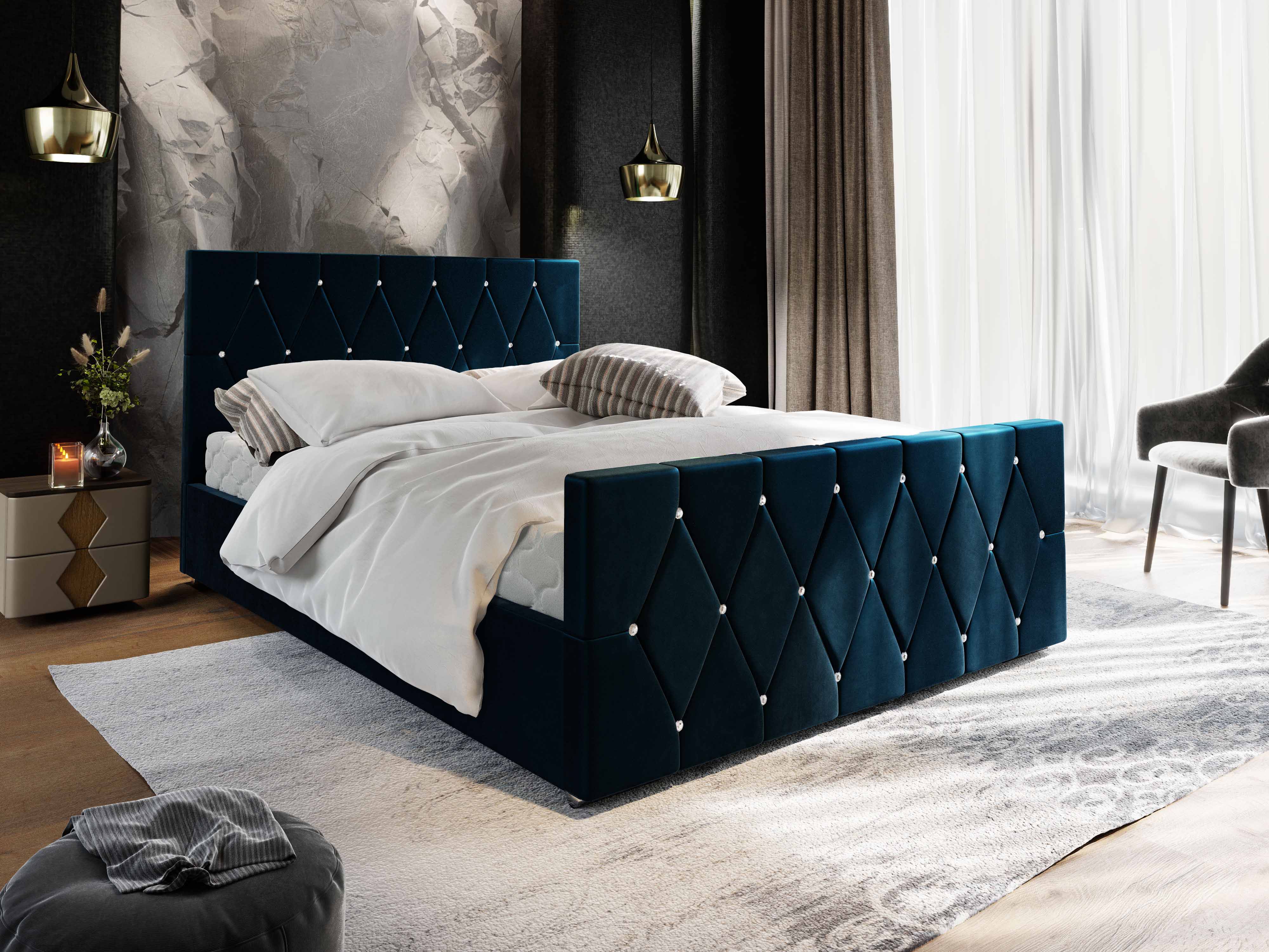 Franciaágy 180 cm Illa (sötétkék) (ágyráccsal és tárolóhellyel)