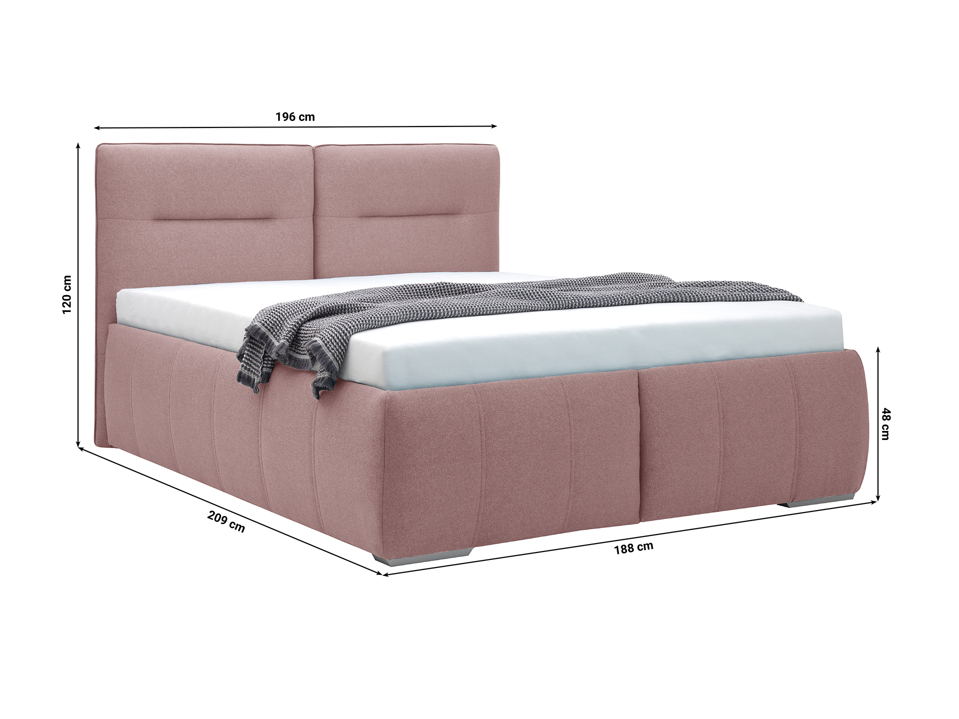 Franciaágy 180 cm Isuna (rózsaszín) (ágyráccsal) (tárolóhellyel)