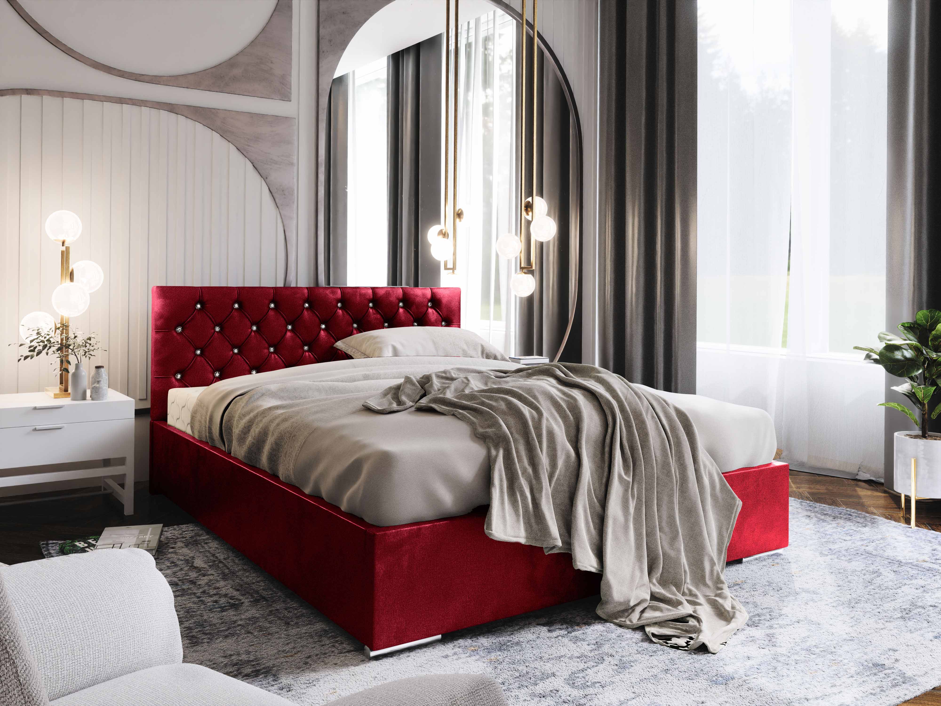 Franciaágy 180 cm Kerry (bordó) (ágyráccsal és tárolóhellyel)