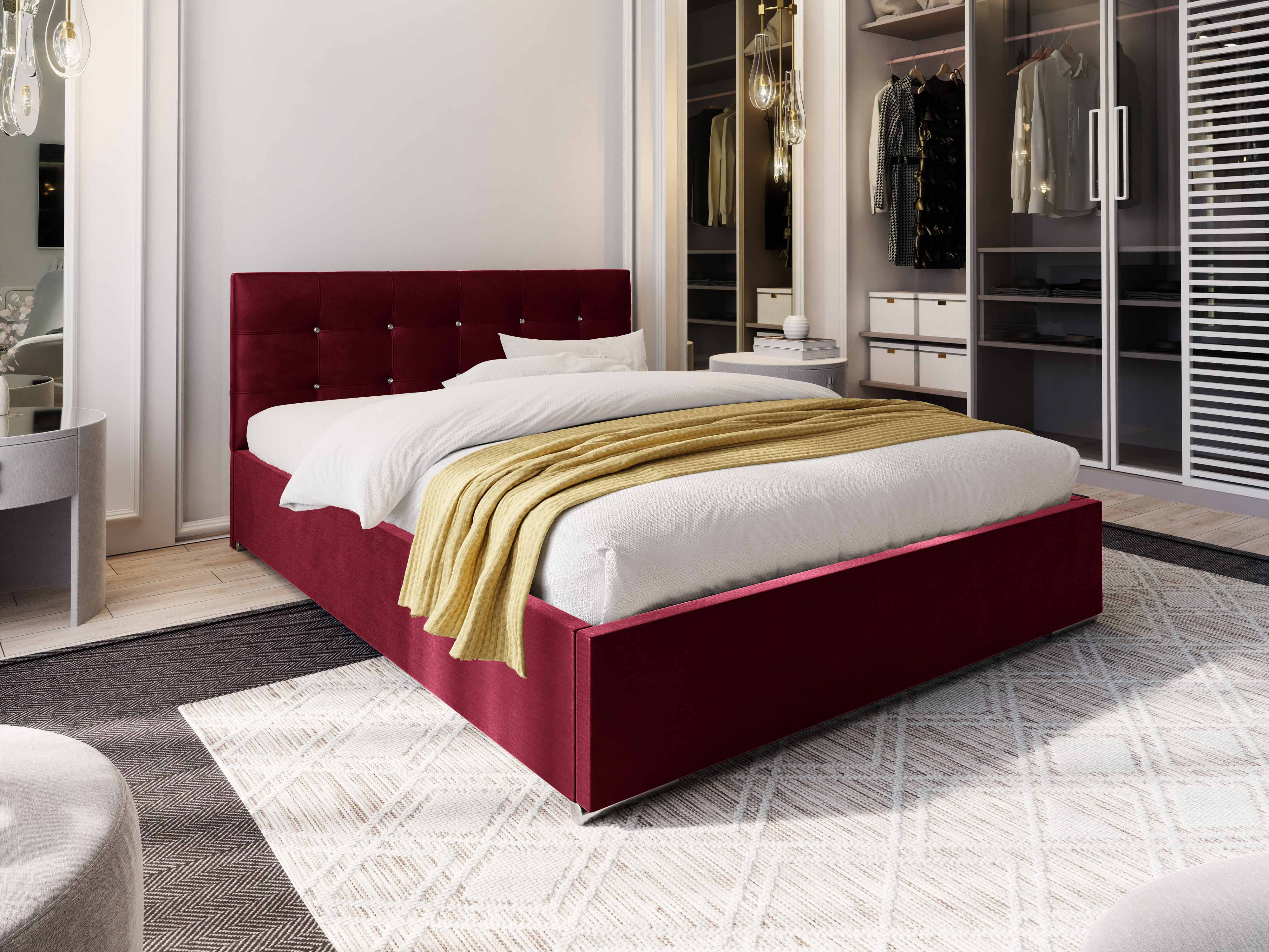 Franciaágy 180 cm Lonnie (bordó) (ágyráccsal és tárolóhellyel)