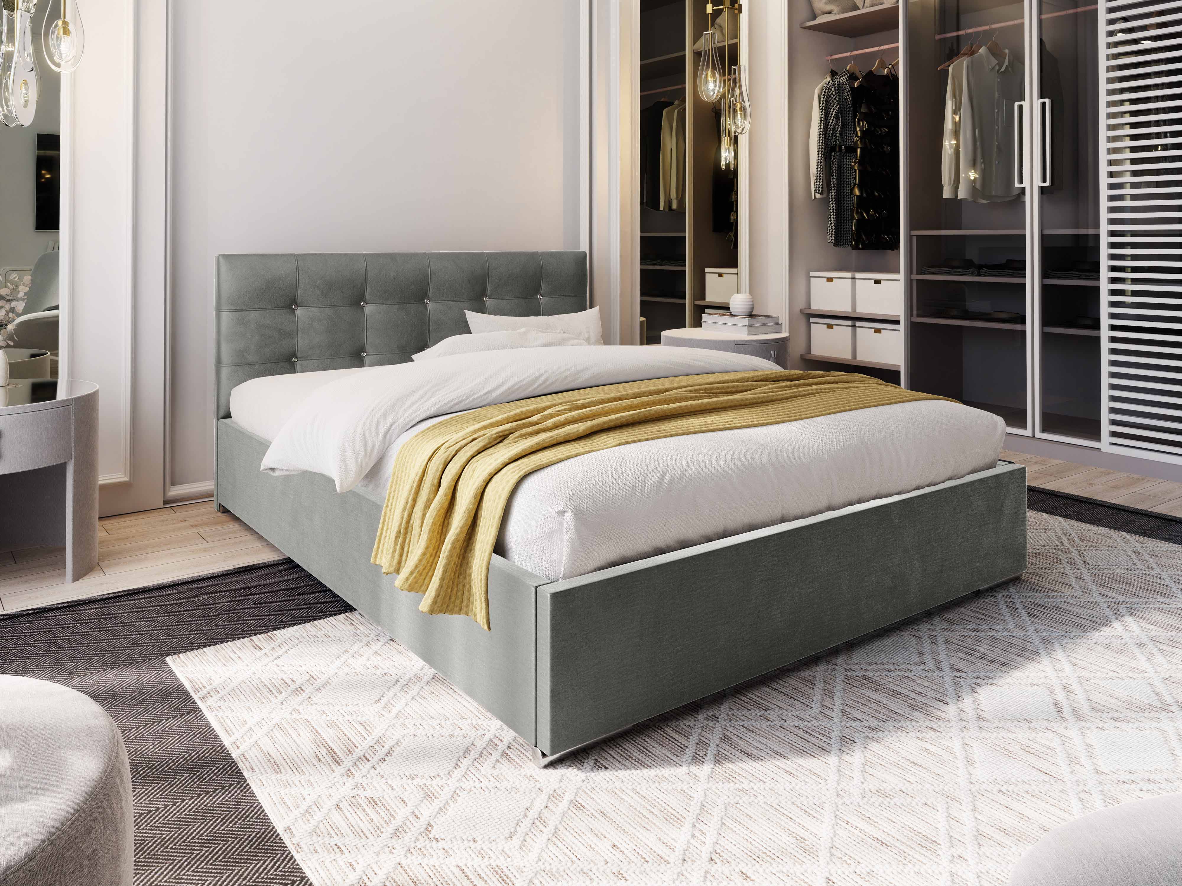 Franciaágy 180 cm Lonnie (sötétszürke) (ágyráccsal és tárolóhellyel)