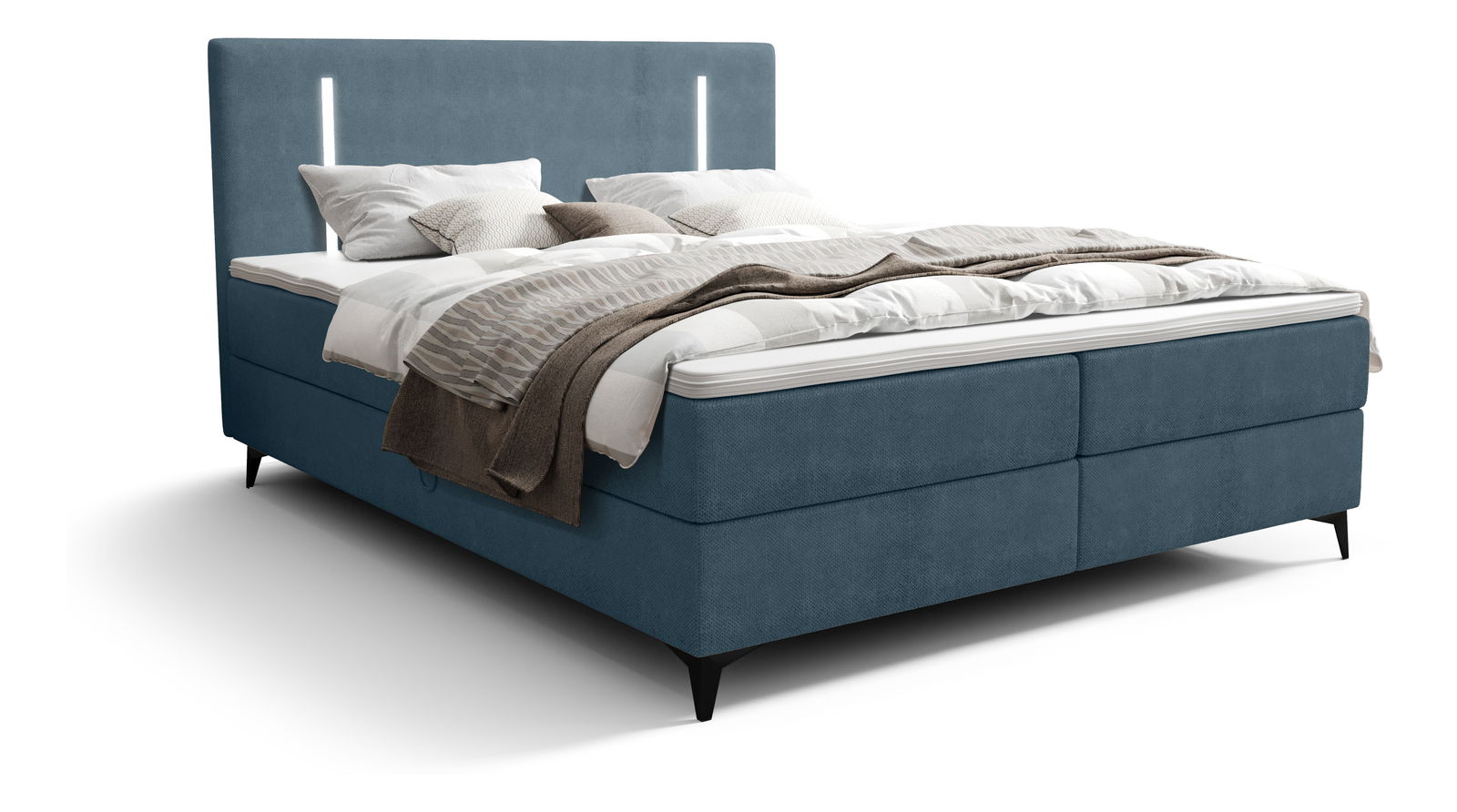 Franciaágy 180 cm Ortega Bonell (világoskék) (ágyráccsal, tárolóhellyel) (LED világítás)