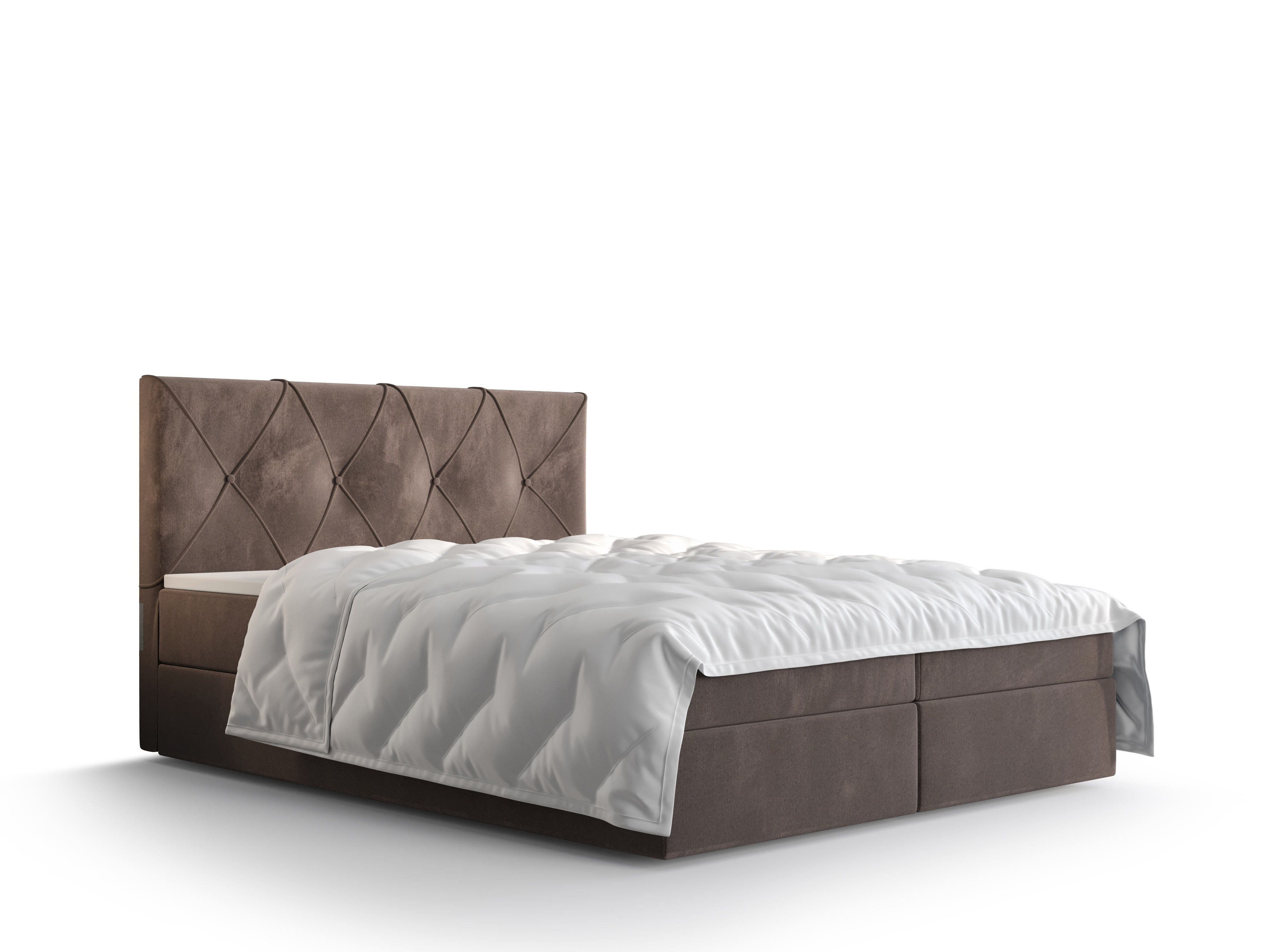 Franciaágy Boxspring 140 cm Athena (barna) (matraccal és tárolóhellyel)