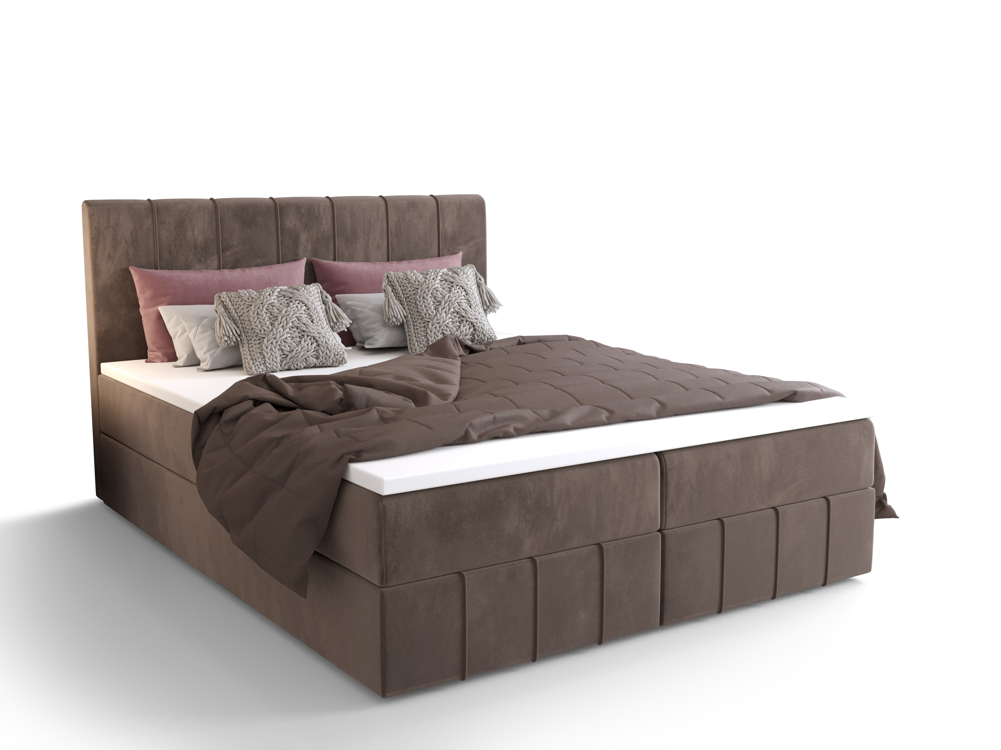 Franciaágy Boxspring 140 cm Barack (barna) (matraccal és tárolóhellyel)