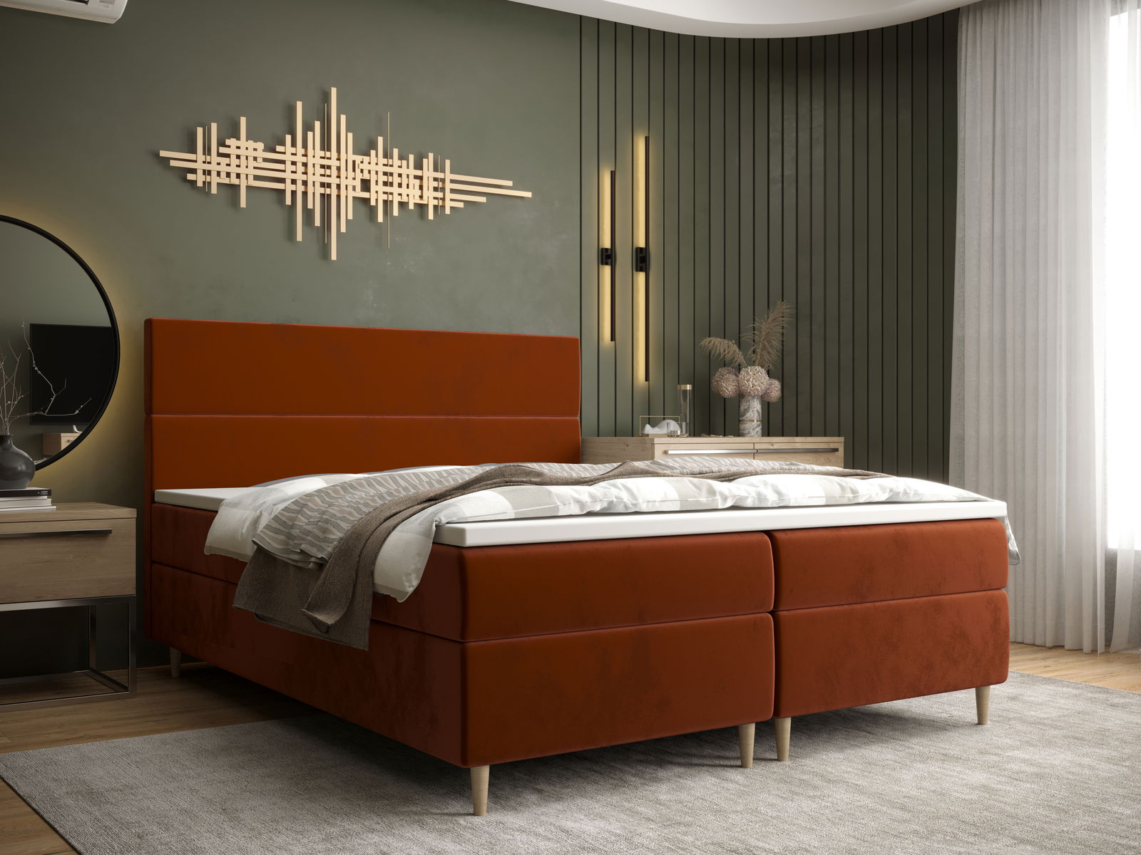 Franciaágy Boxspring 140 cm Flu Comfort (barnás narancs) (matraccal és tárolóhellyel)