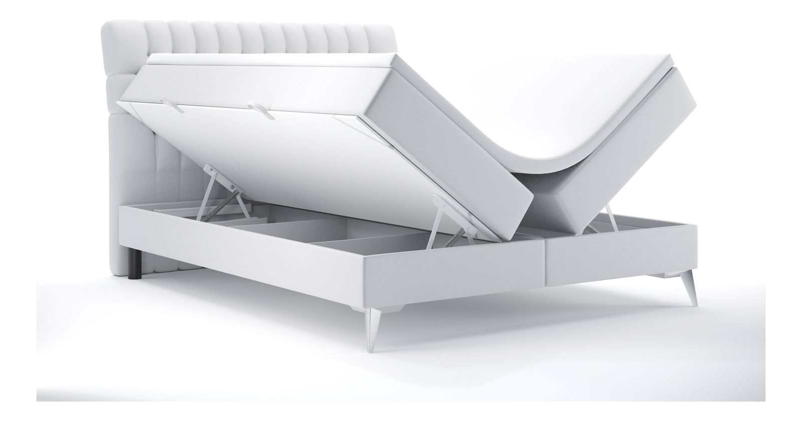 Franciaágy Boxspring 140 cm Molera (fehér öko-bőr) (tárolóhellyel)