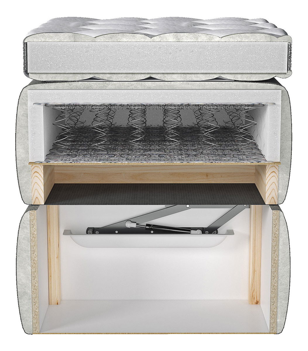 két tárolódoboz (az ágy mindkét oldalán): fa + laminált, gázlift (könnyebbé teszi a nyitást),