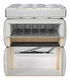 két ágyneműtartó (az ágy mindkét oldalán): fa + laminált, gázliftes (könnyen nyitható), két Bonell rugós matrac + poliuretán hab tömör favázon, közepesen kemény H3, fedő (jó matrac) 4 cm : erősen ellenálló hab, steppelt huzat klímaszálas (biztosítja a légkeringést és csökkenti a mikroorganizmusokat), steppelt kárpitozott fejtámla, fém lábak 10 cm magas