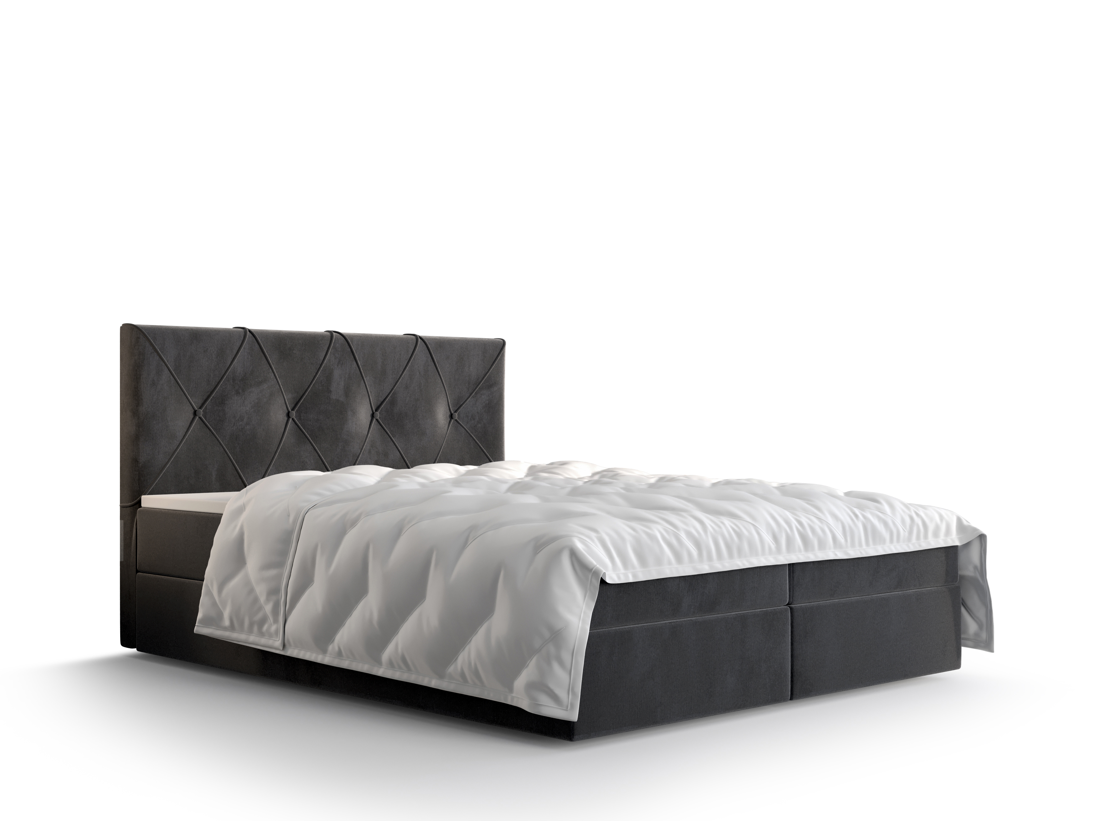 Franciaágy Boxspring 180 cm Athena (sötétszürke) (matraccal és tárolóhellyel)