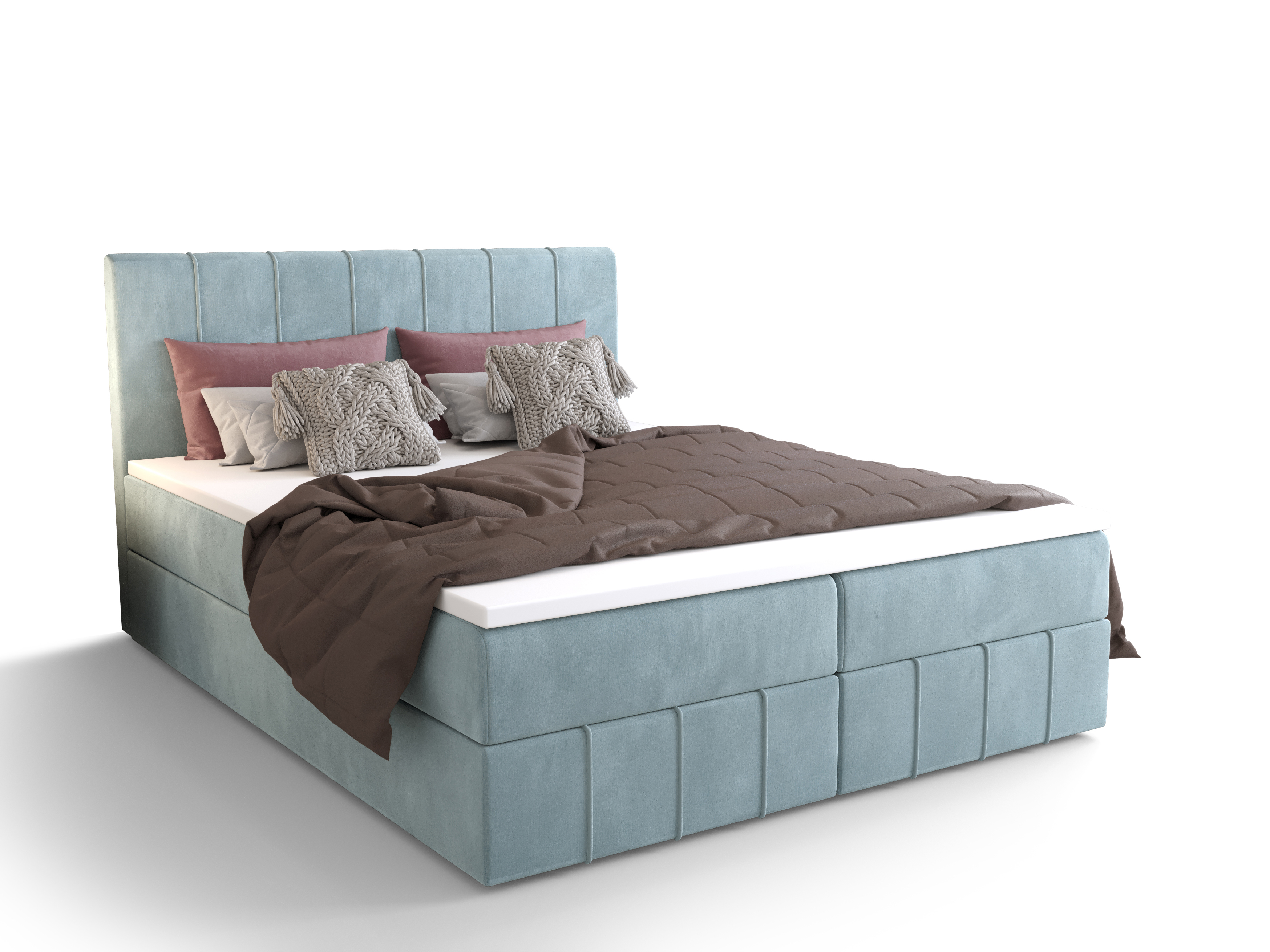 Franciaágy Boxspring 180 cm Barack (szürkéskék) (matraccal és tárolóhellyel)