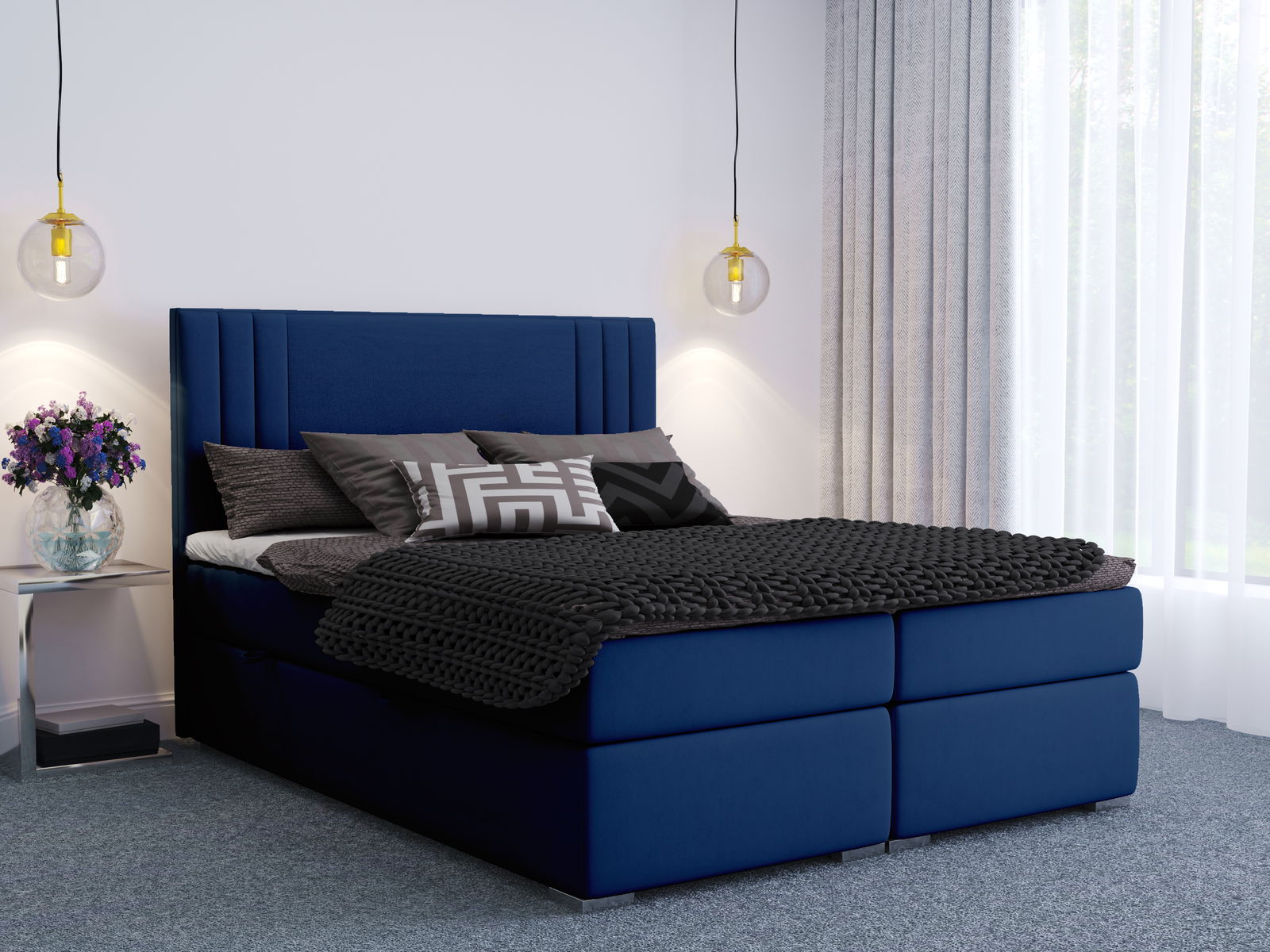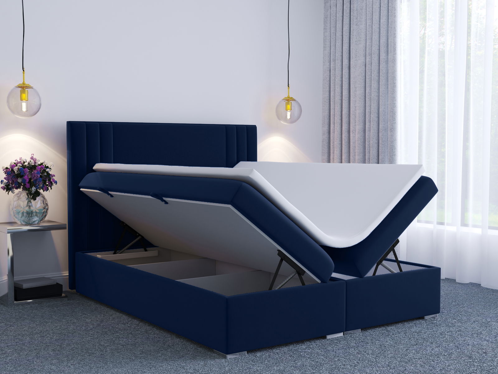 Franciaágy Boxspring 180 cm Morcano (sötétkék) (tárolóhellyel)