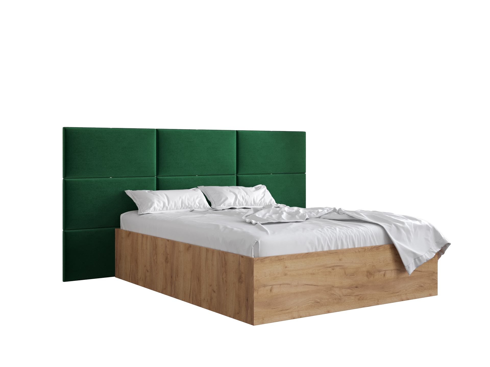 Franciaágy kárpitozott fejtámlával 160 cm Brittany 2 (arany craft tölgy + zöld) (ágyráccsal)