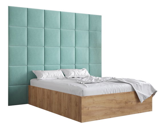 Franciaágy kárpitozott fejtámlával 160 cm Brittany 3 (arany craft tölgy + menta) (ágyráccsal)