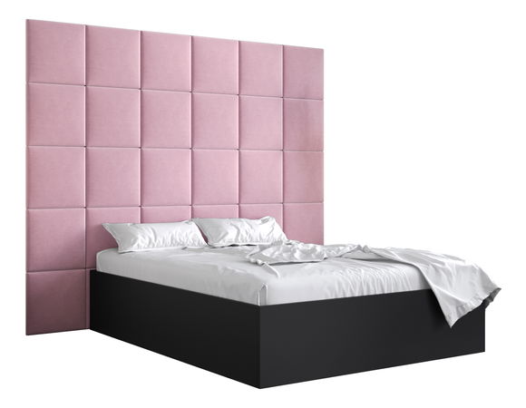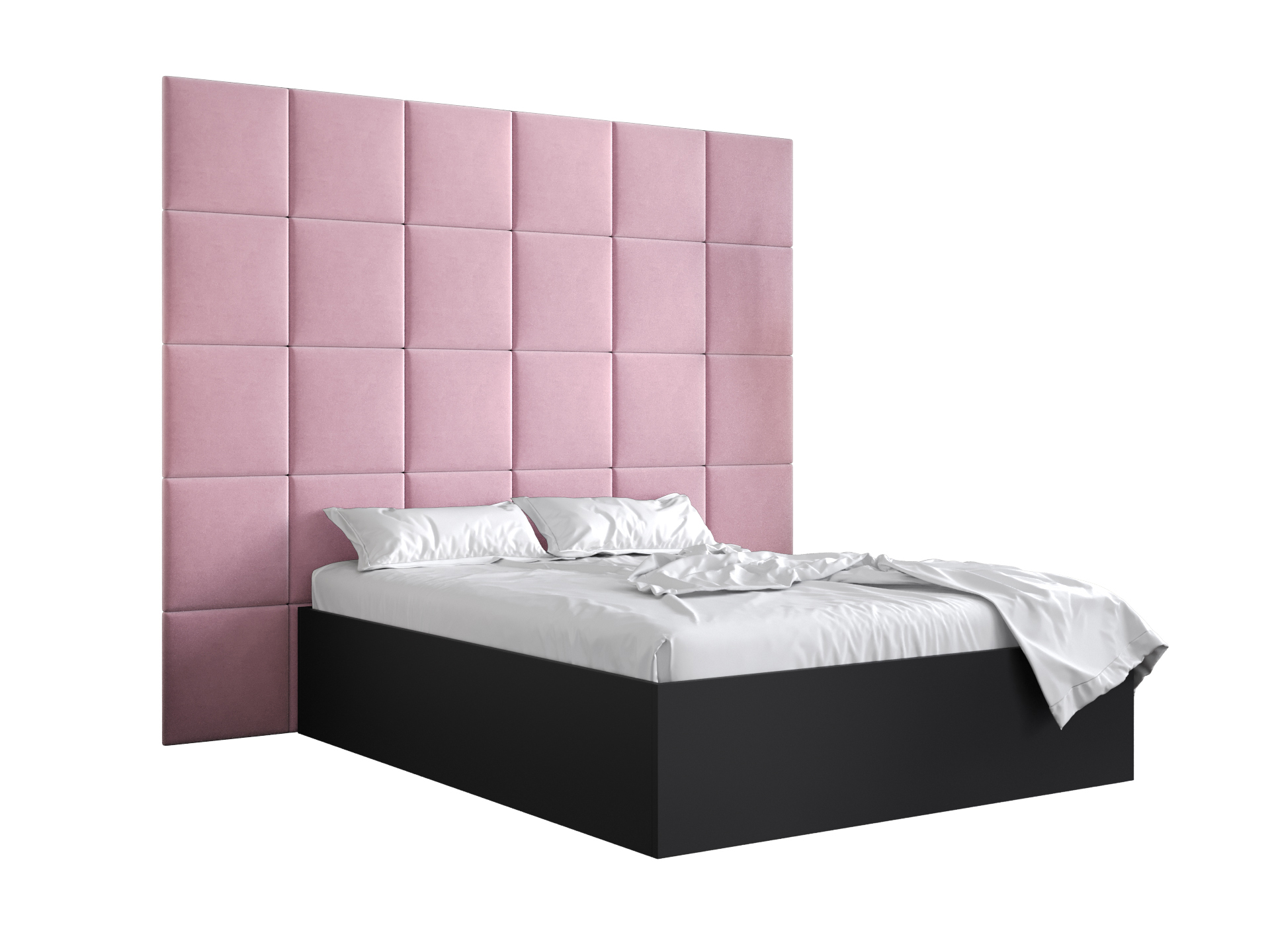 Franciaágy kárpitozott fejtámlával 160 cm Brittany 3 (matt fekete + rózsaszín) (ágyráccsal)