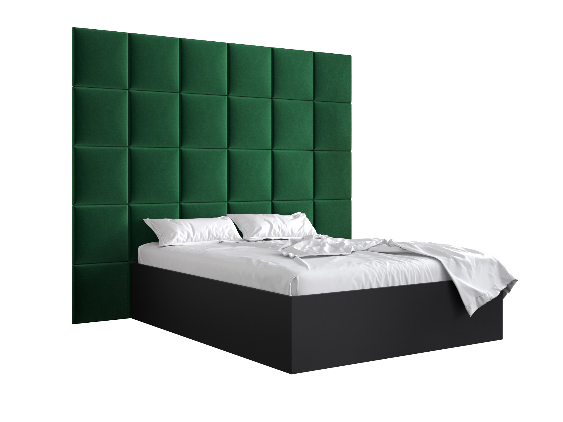 Franciaágy kárpitozott fejtámlával 160 cm Brittany 3 (matt fekete + zöld) (ágyráccsal)
