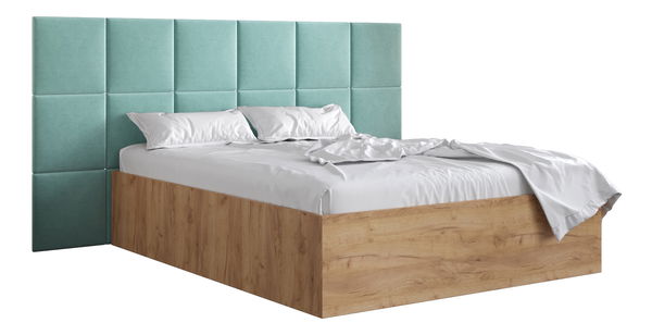 Franciaágy kárpitozott fejtámlával 160 cm Brittany 4 (arany craft tölgy + menta) (ágyráccsal)
