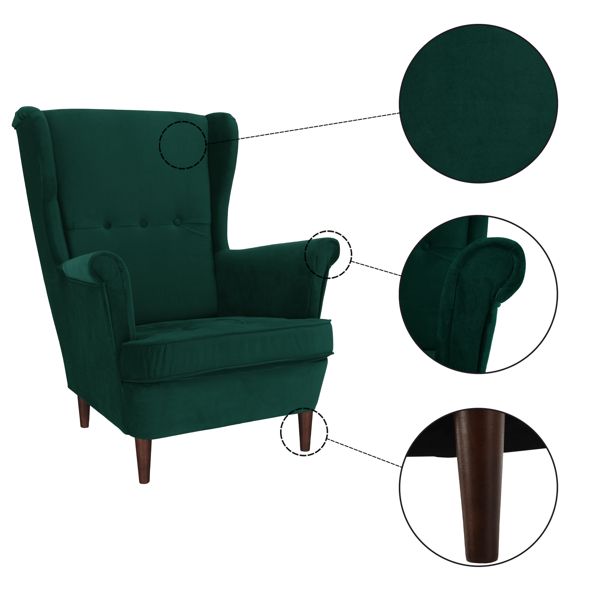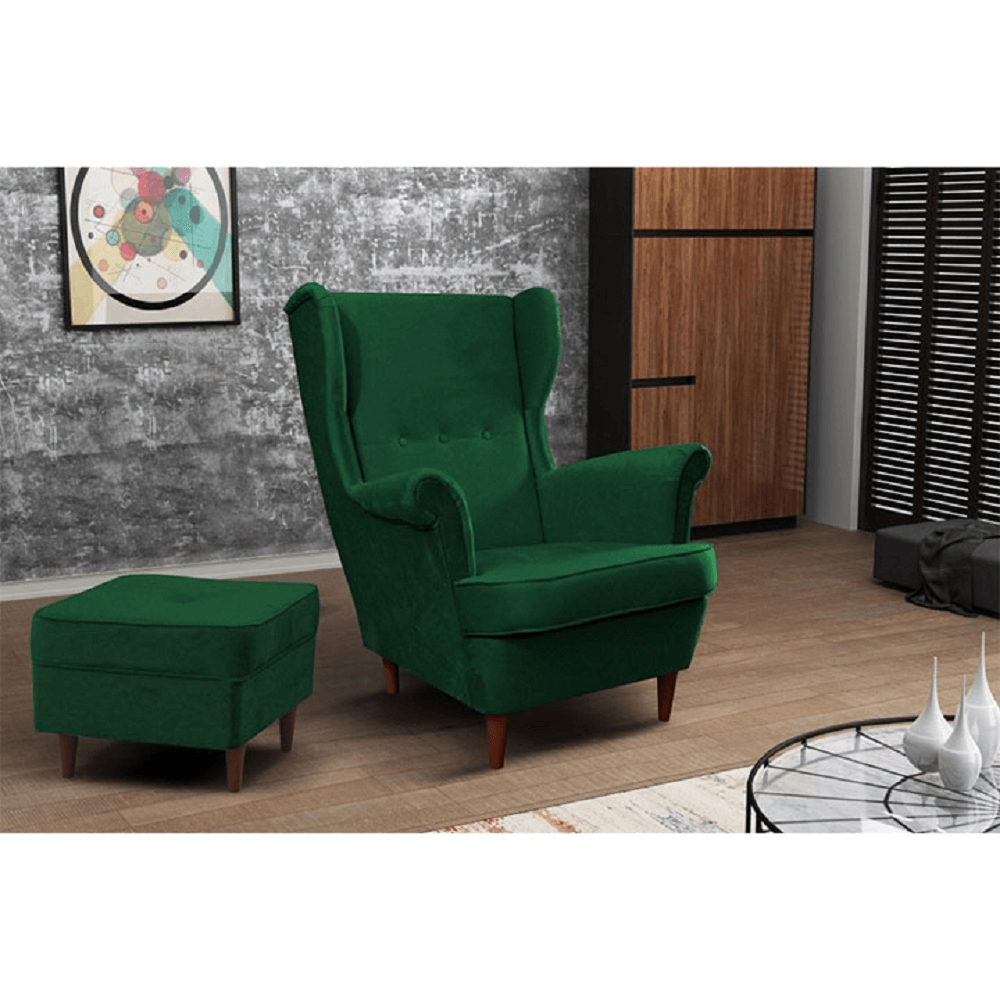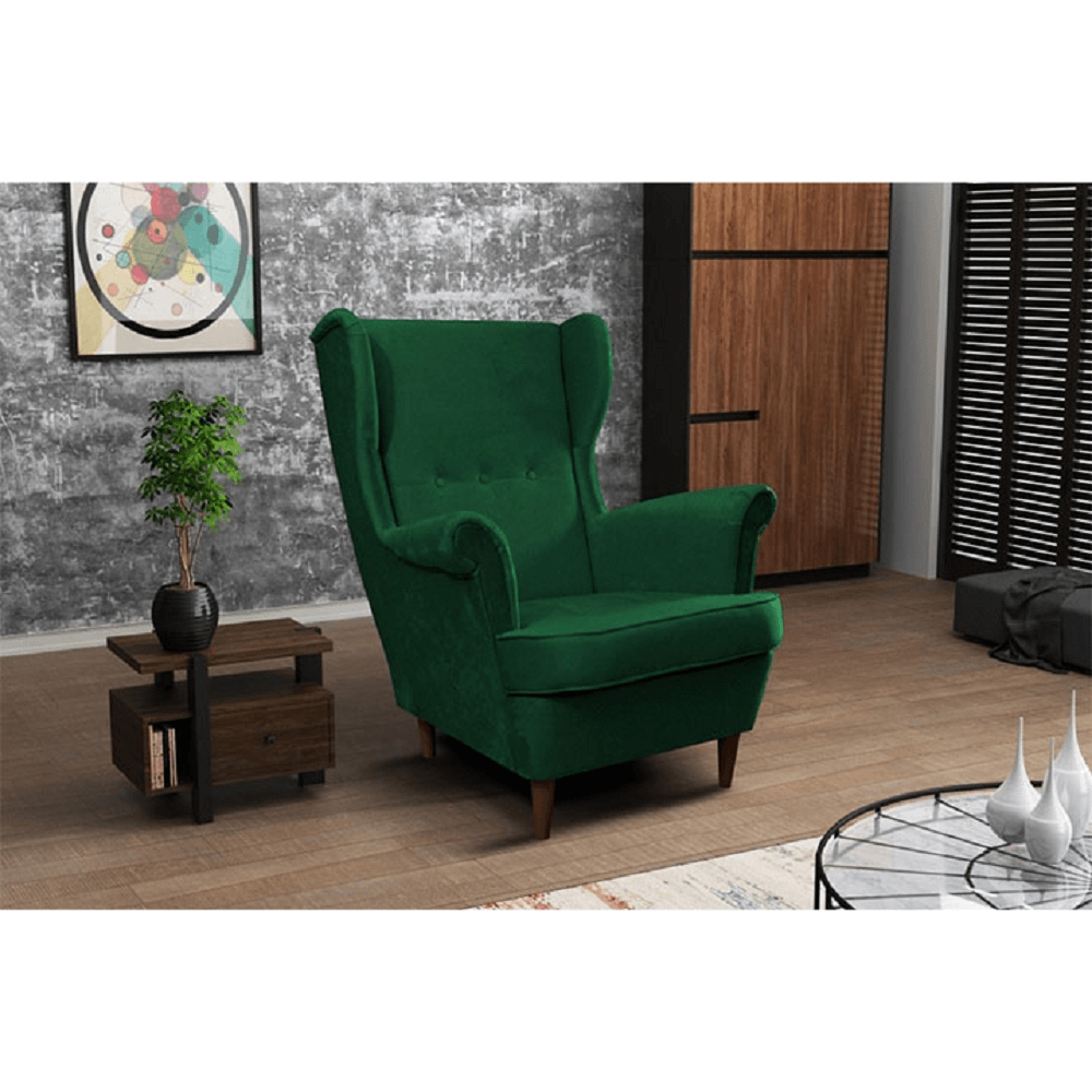 Füles fotel Rafaelo (zöld + dió) *bazár