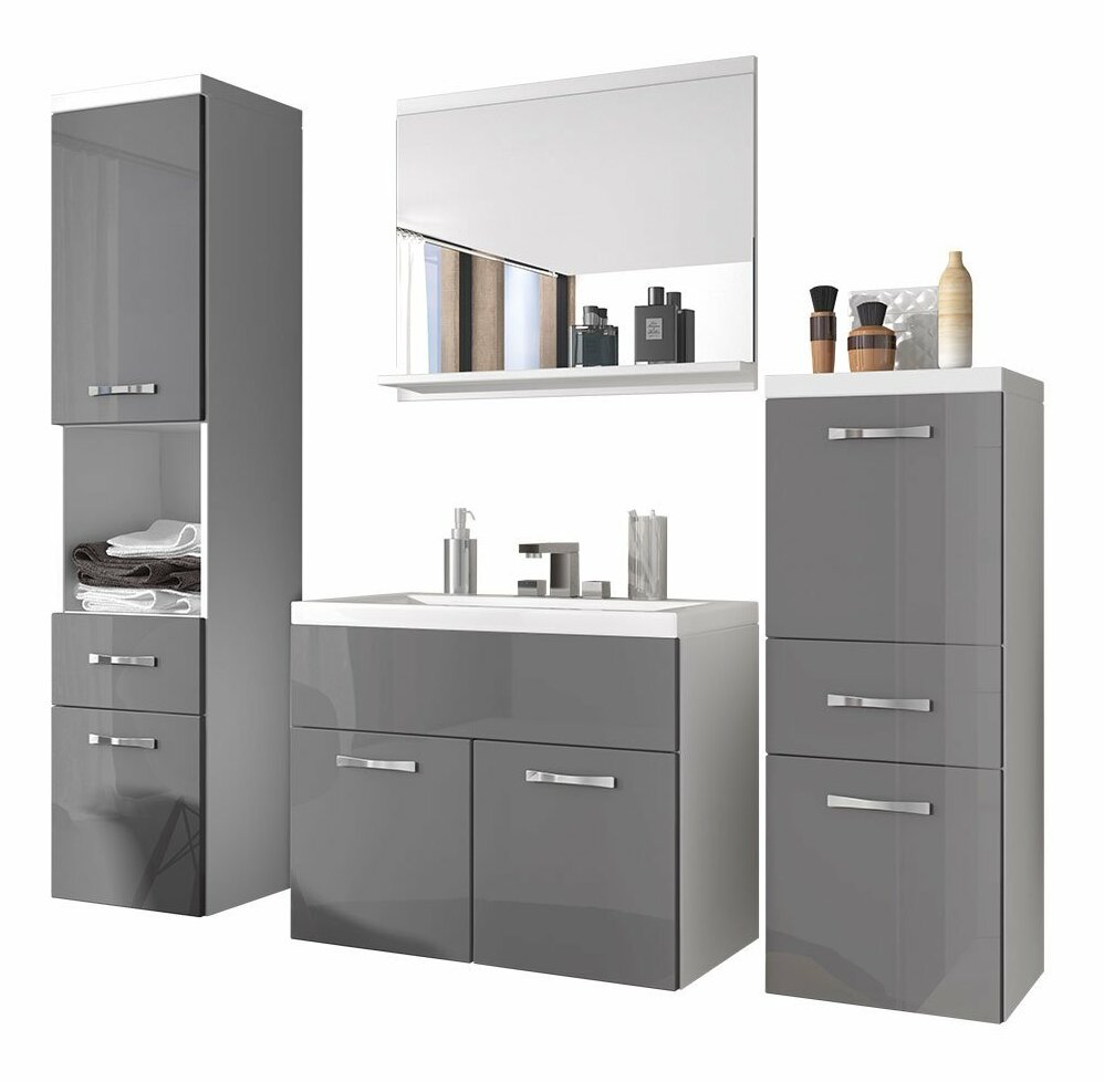 MutasdÉrdekes polcokra és fiókokra való felosztás jellemzi őket. A magas akasztós szekrényben 3 polc található, melyek közül kettő zárt. Alul 2 fiók található, egy kicsi és egy nagyobb, mély. A második oldalsó szekrény valamivel alacsonyabb, és csak fiókokból áll. Két mély és egy kis cikkekhez és kozmetikumokhoz. A szett másik eleme a szintén felfüggesztett mosogatószekrény. Egy magas szekrénye van. Talán ideális törölközők vagy tisztítószerek tárolására. Tükör nem hiányozhat a fürdőszobából, így a készletben egy 60 cm x 50 cm méretű tükör található. Laminált lapra van helyezve, keskeny polccal.