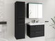 Fürdőszoba bútor Tameko I (fekete grafit + fekete gyapjú) (Economico BYU 020M vízcsappal) (fehér LED világítás)