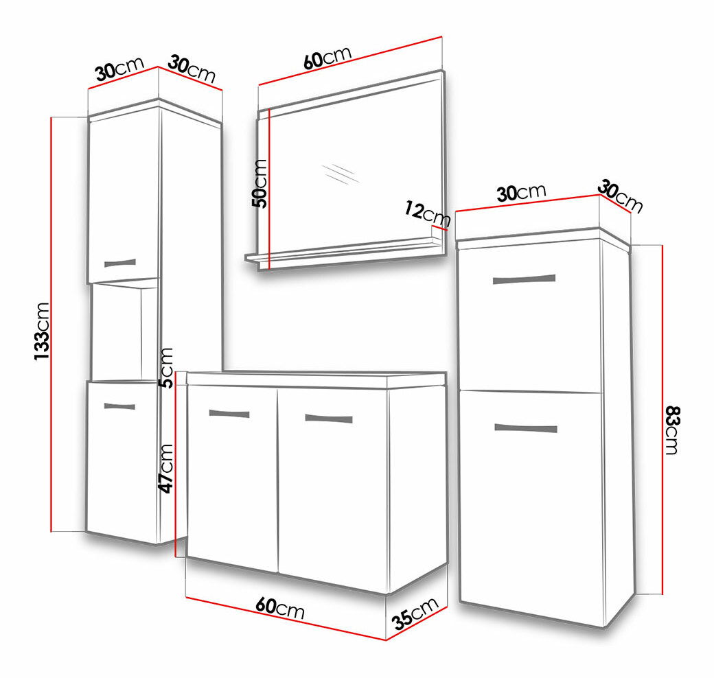 szélesség: 30 cm, magasság: 83 cm, mélység: 30 cm