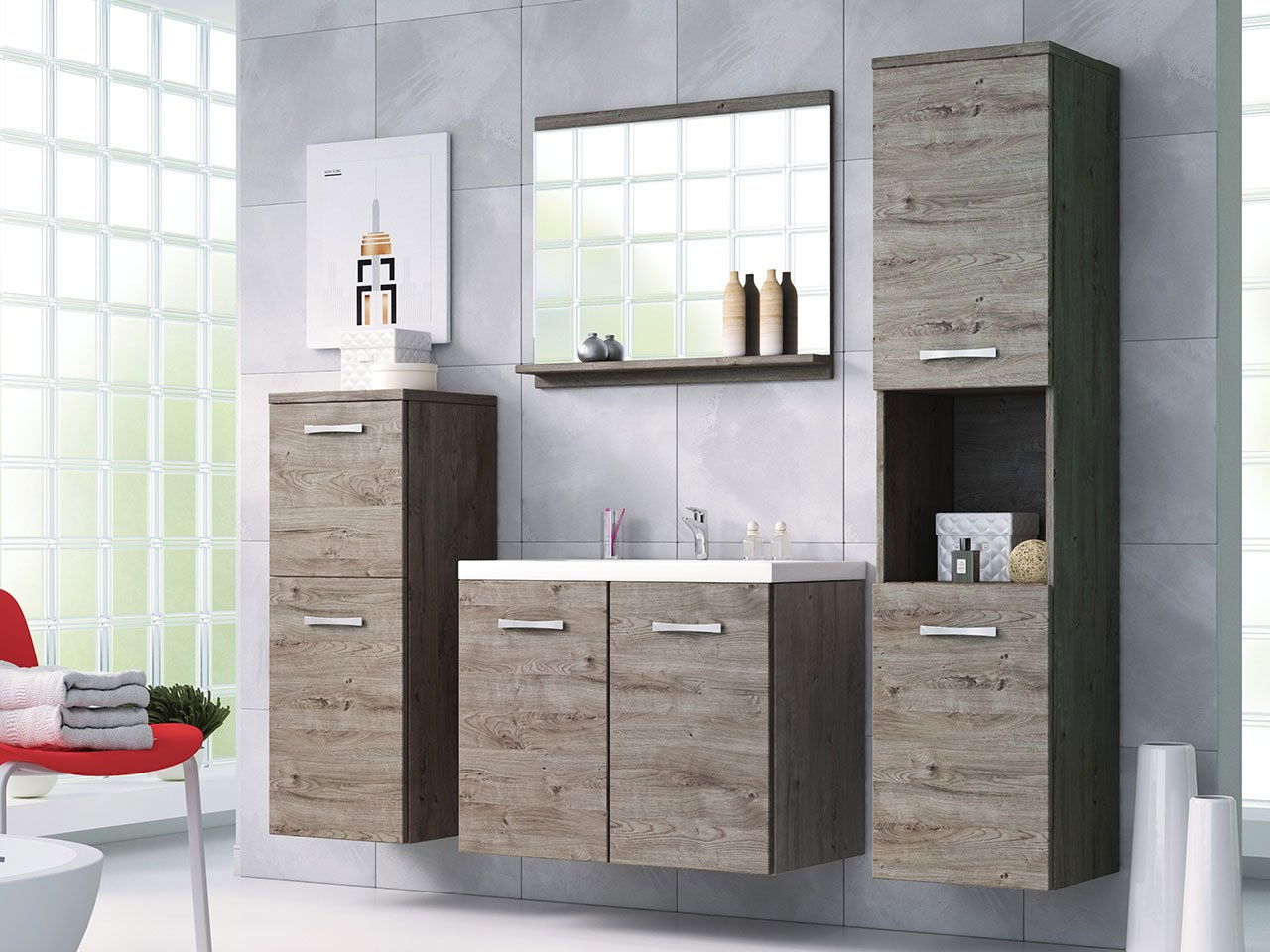 Fürdőszobabútor garnitúra Melinda I (wotan tölgy) (szifon nélkül)