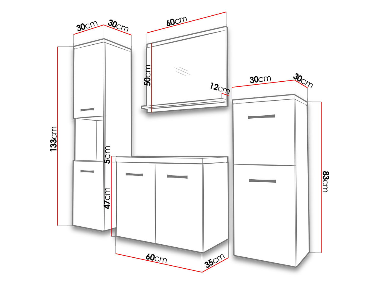 szélesség: 30 cm, magasság: 83 cm, mélység: 30 cm