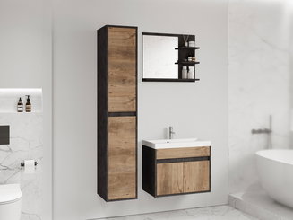 Fürdőszoba bútor Lunara (kastanien breslau + kastanien breslau + fekete grafit) (szifon nélkül, Economico csapteleppel)