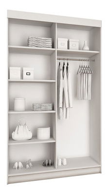 laminált forgácslap 16 mm, élek PVC furnérral, tolóajtó rendszer - alumínium csapágyak, ajtóélek alumínium fogantyúval bevonva, ami megakadályozza az ajtó meghajlását, minőségi vasalat, rúd és polcok belül, LED világítás kiegészítő opcióként (tartozék a csomagban) a csomag az RGB verziójú távirányítóban)