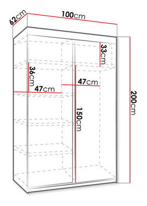 A szekrény ideális választás azok számára, akik kényelmet és stílust keresnek. A Sahara 100 tolószekrény egyesíti magában az összes tulajdonságot, amely egy tökéletes szekrénynek, előszobának és nappalinak kell, hogy rendelkezzen. Időtálló kialakítása és univerzális színpalettája miatt sokáig divatos marad. A tolóajtós szekrény hozzáadott értéke a funkcionalitása. A jól átgondolt polcok elrendezése segít a ruhák, cipősdobozok és akár bőröndök tárolásában is. A bútorok kiváló minőségű alkatrészekből készülnek, így a tolóajtós szekrény hosszú ideig gyönyörködteti a szemet hibátlan megjelenésével. Méretek: szélesség: 100 cm, magasság: 200 cm, mélység: 62 cm Kivitel: 16 mm-es laminált forgácslap, PVC furnérral borított élek, tolóajtó-rendszer – alumínium csapágyak, alumínium fogantyúkkal ellátott ajtóélek, amelyek megakadályozzák az ajtók meggörbülését, kiváló minőségű szerelvények, bár és polcok belül, LED-es világítás opcionális kiegészítőként (az RGB változatban a csomag része a távirányító) Garancia: 24 hónap