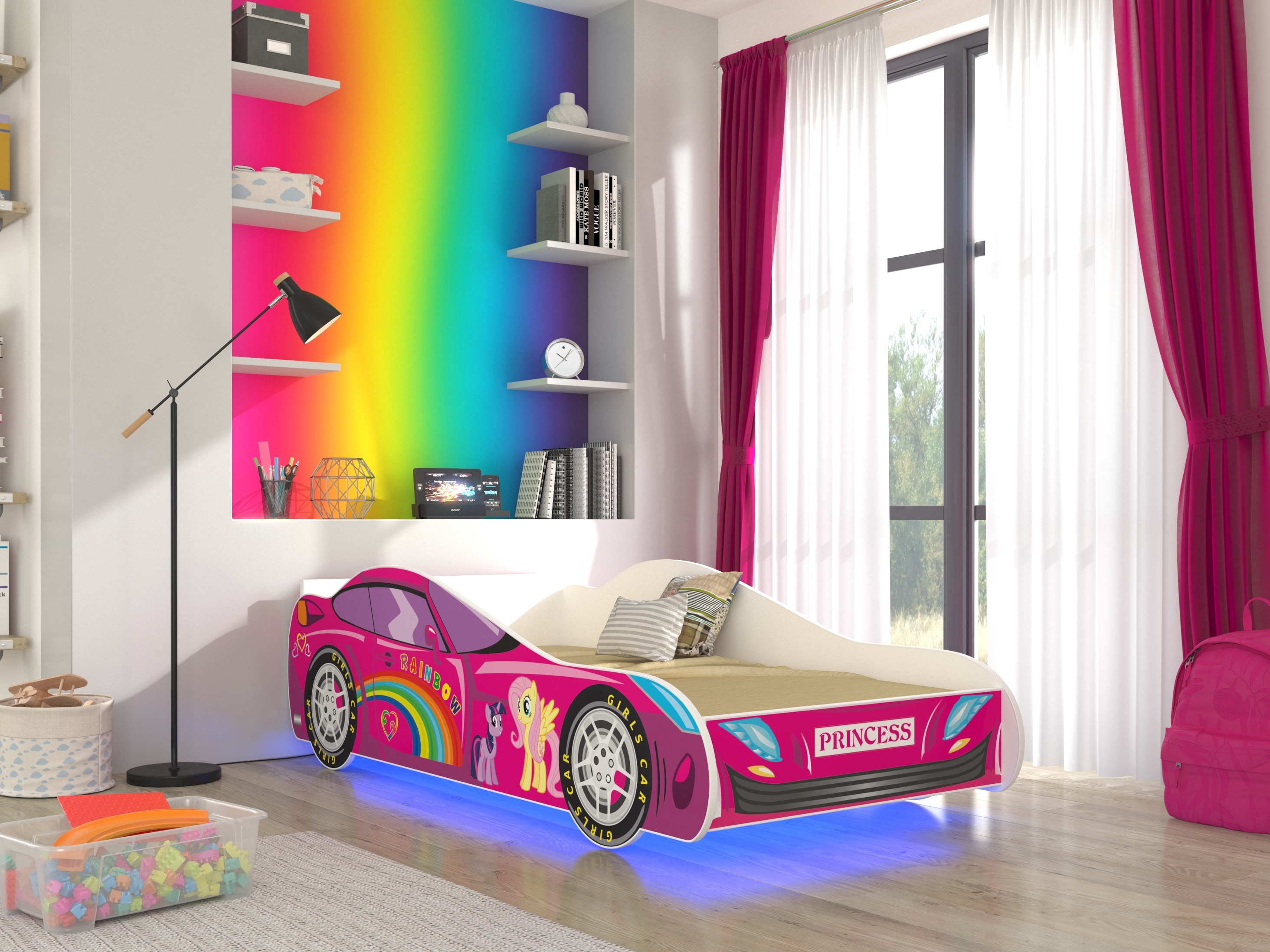 Gyerekágy 140x70 cm Versenyző (ágyráccsal és matraccal) (rózsaszín)