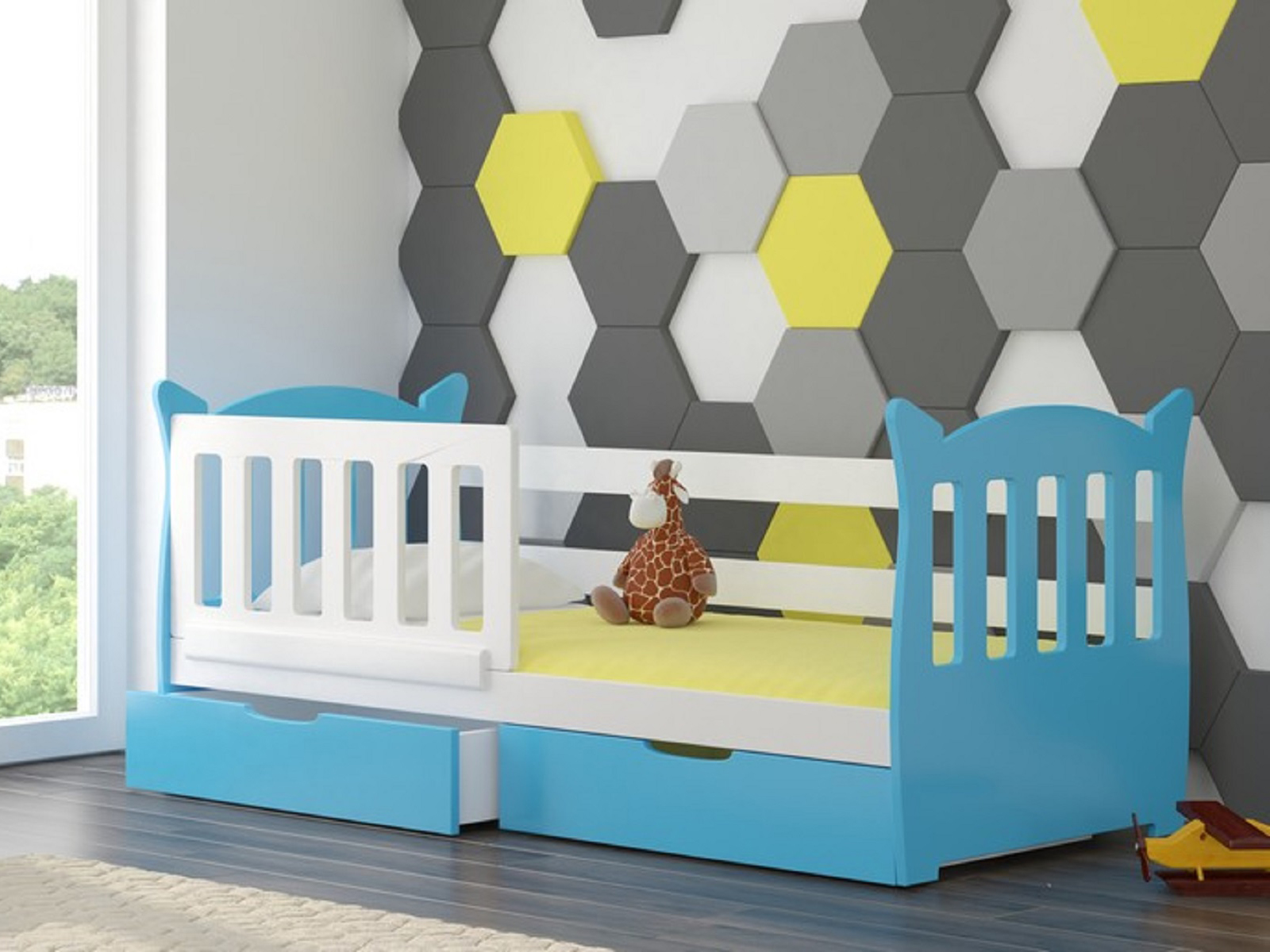 Gyerekágy 160x75 cm Lenka (ágyráccsal és matraccal) (fehér + kék)