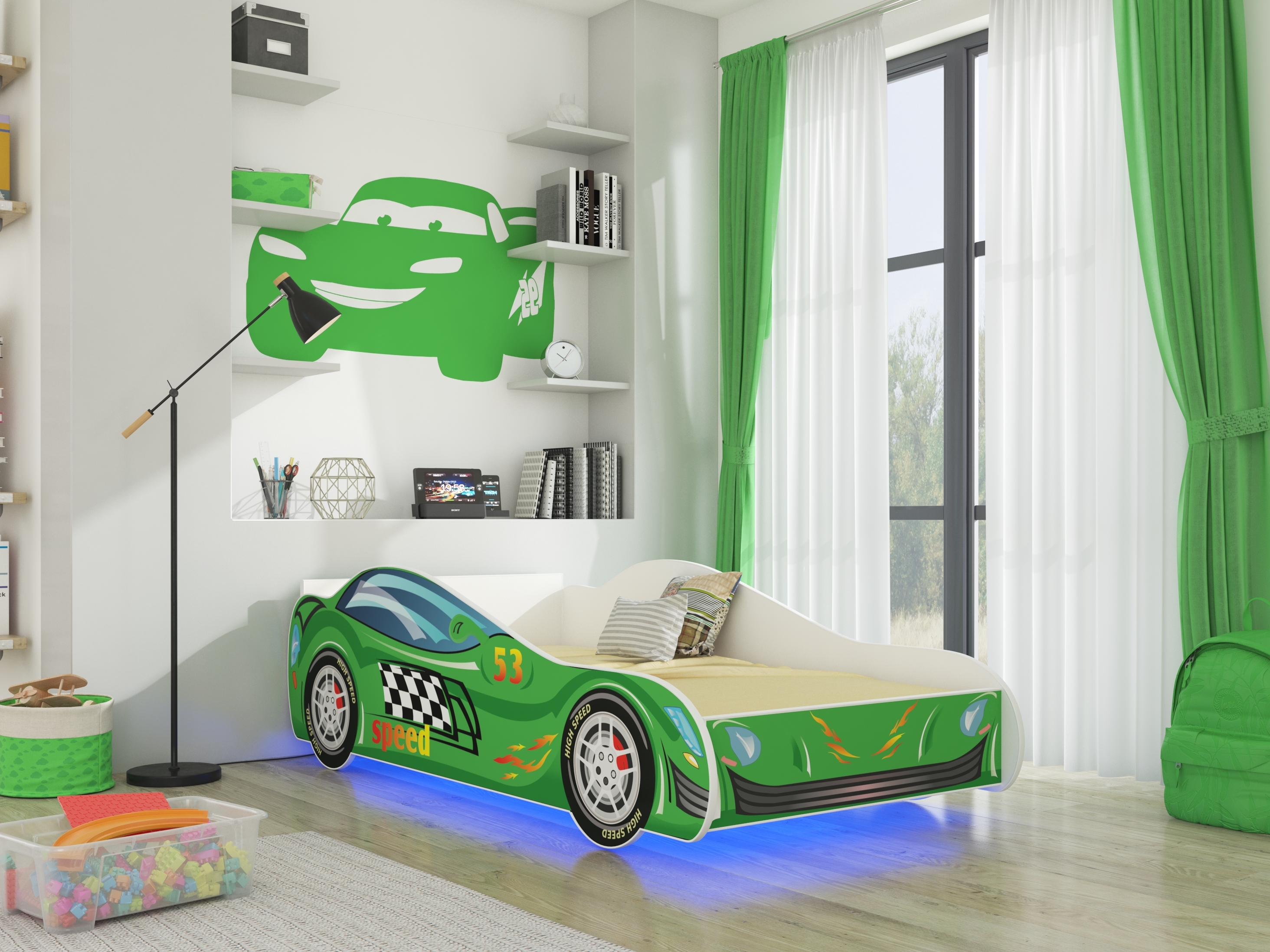 Gyerekágy 160x780 cm Versenyző (ágyráccsal és matraccal) (zöld)