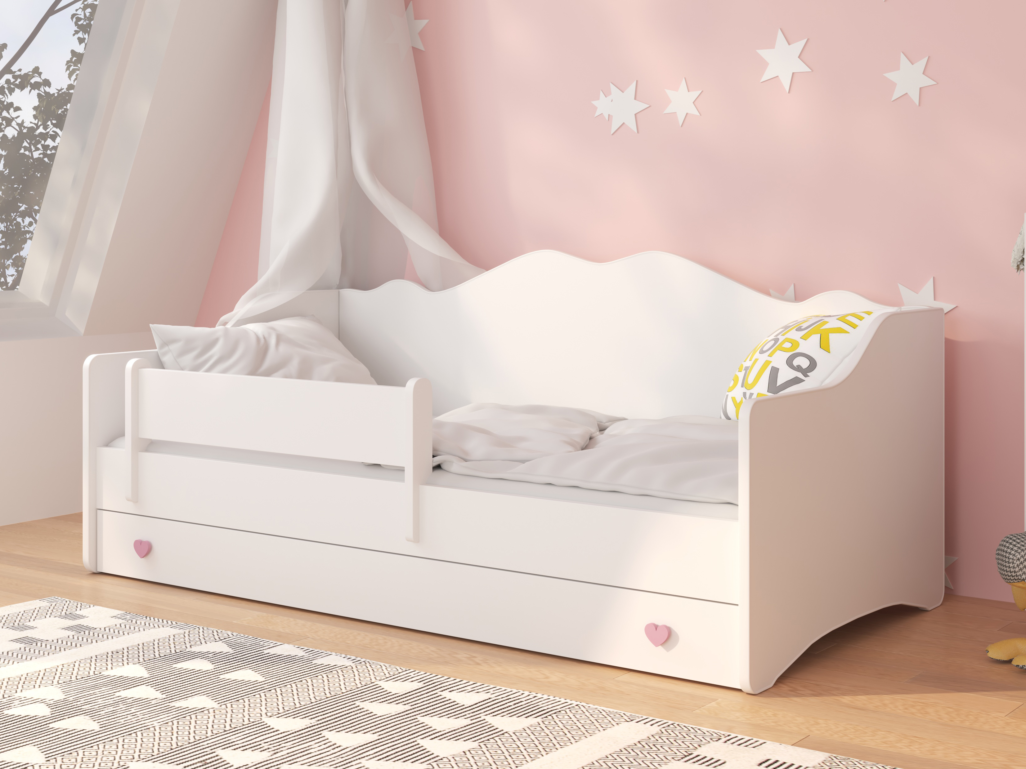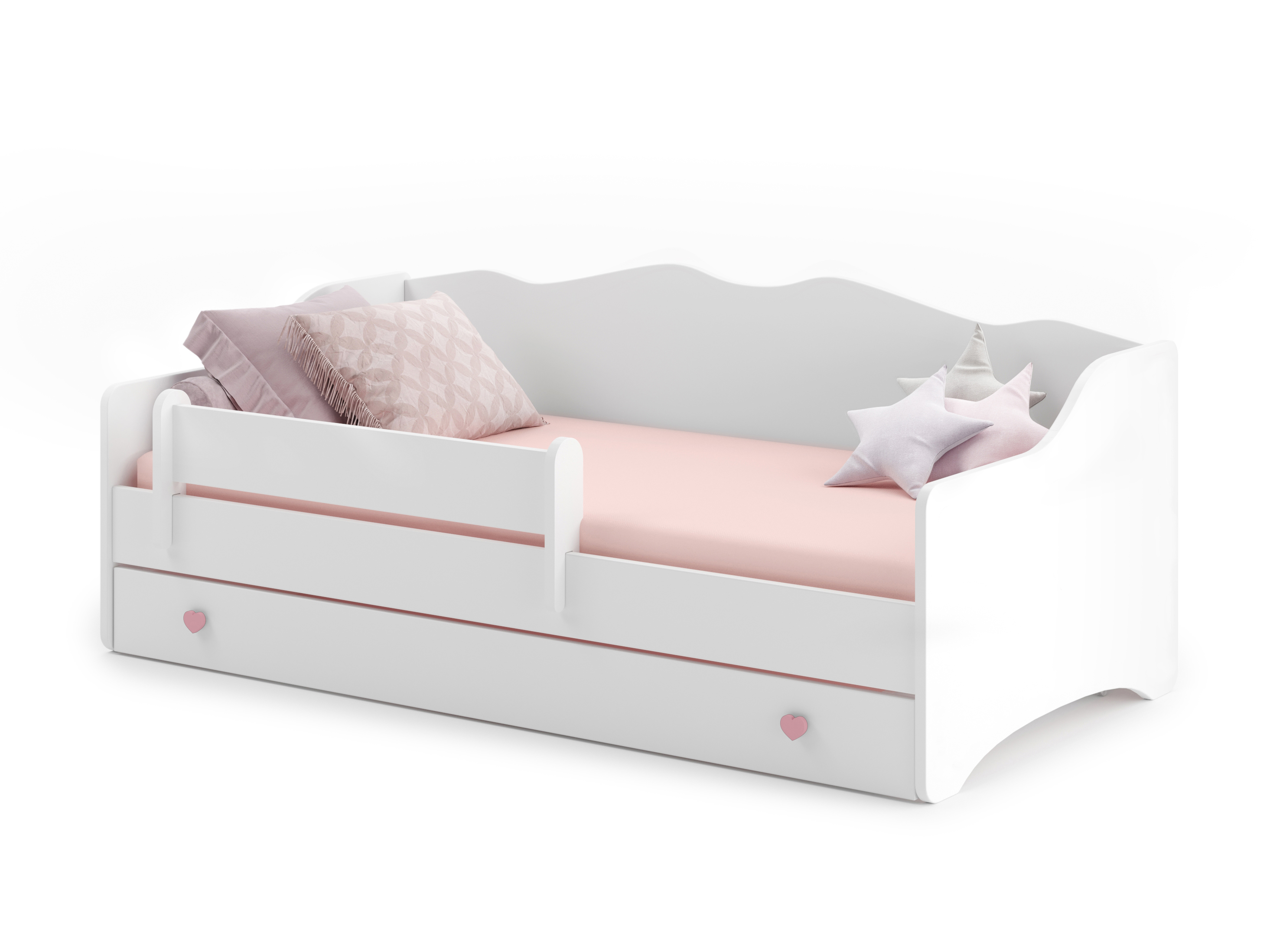 Gyerekágy 160x80 cm Ester I (ágyráccsal és matraccal) (fehér + rózsaszín)
