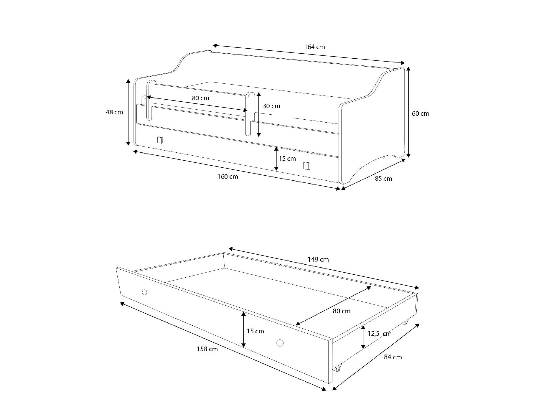Gyerekágy 160x80 cm Naty I (ágyráccsal és matraccal) (fehér + szürke)