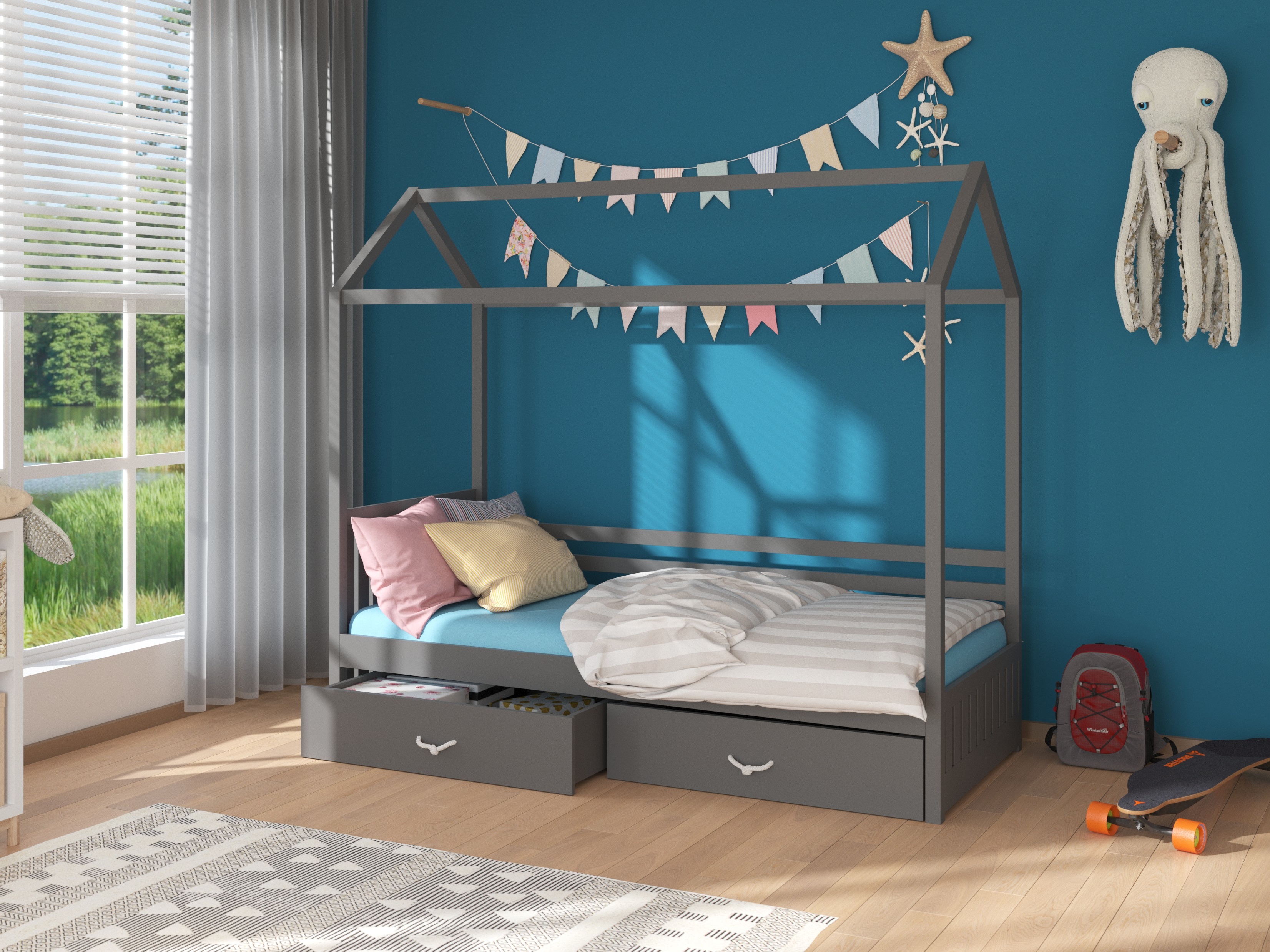 Gyerekágy 200x90 cm Rosie I (ágyráccsal) (grafit)