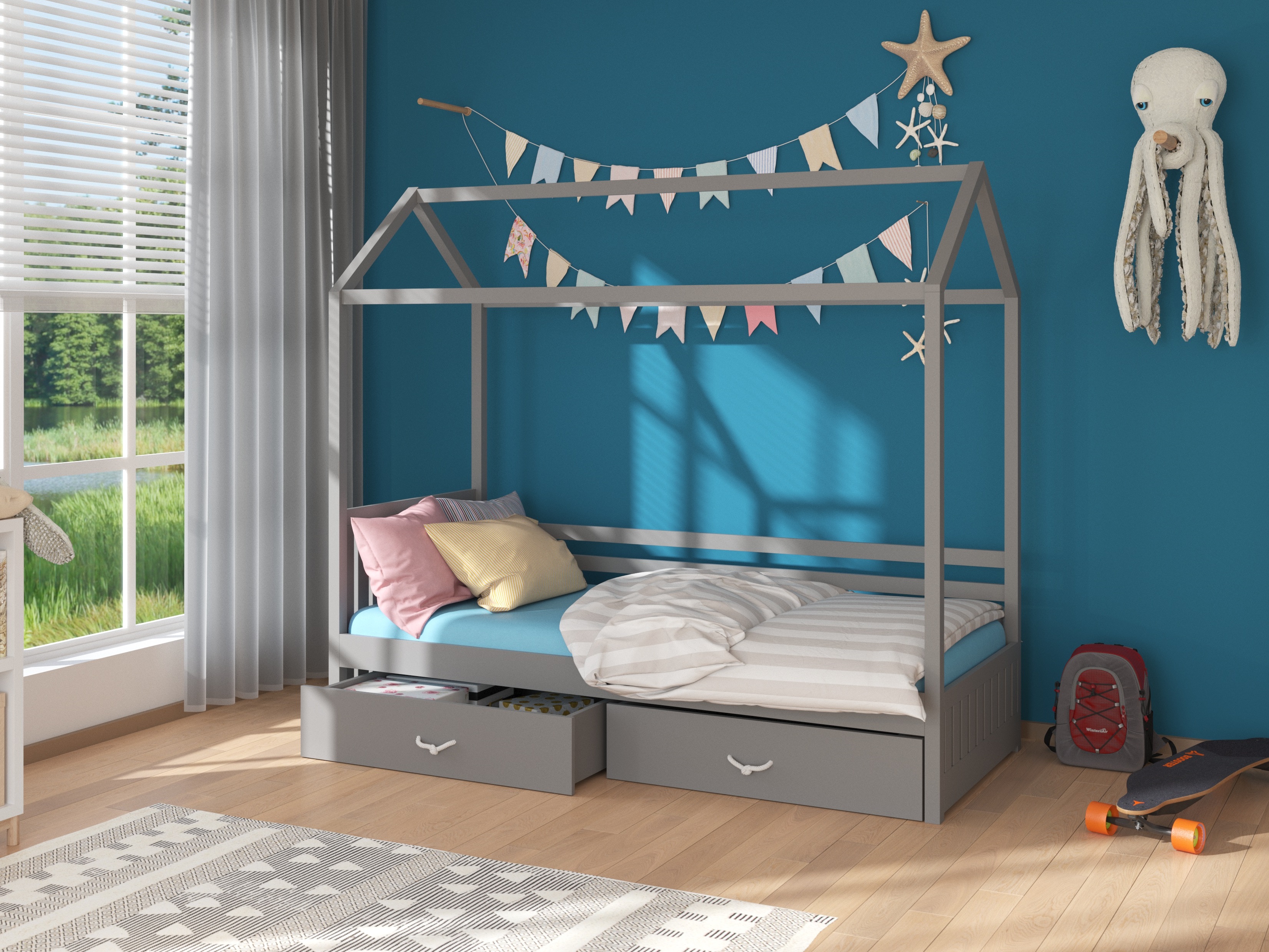 Gyerekágy 200x90 cm Rosie I (ágyráccsal) (szürke)