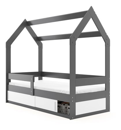 Gyerekágy 80 cm Dormo (grafit + fehér) (ágyráccsal, matraccal és tárolóhellyel)