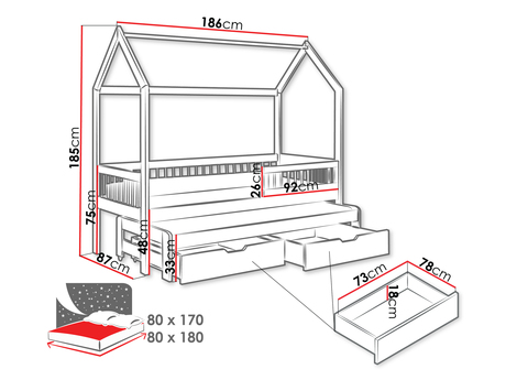 Gyerekágy 80 cm Kerlox (szürke) (ágyráccsal) (tárolóhellyel)